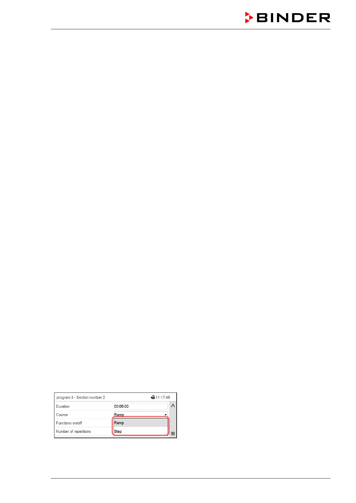 Selecting the setting “Ramp” or “Step”