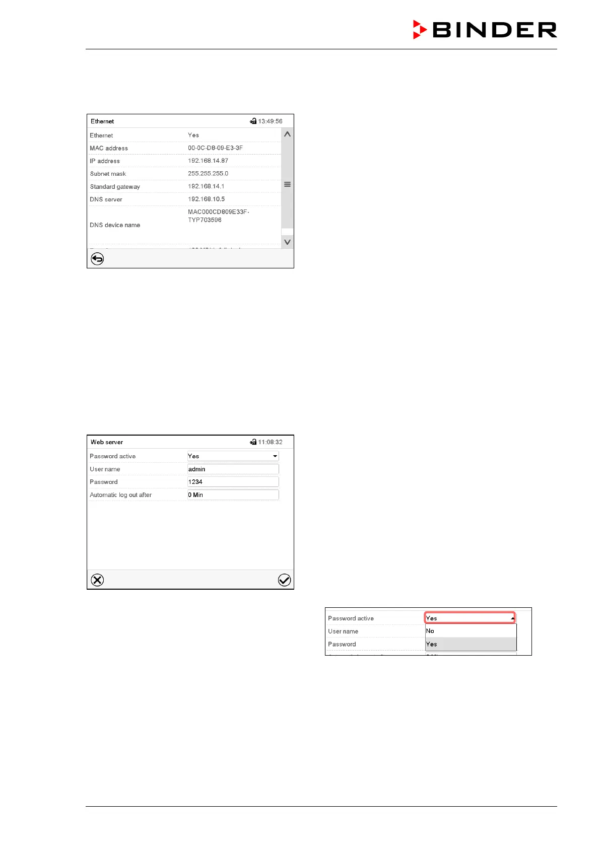 the Internet. The IP address is available via Chamber information > Ethernet. The BINDER web server