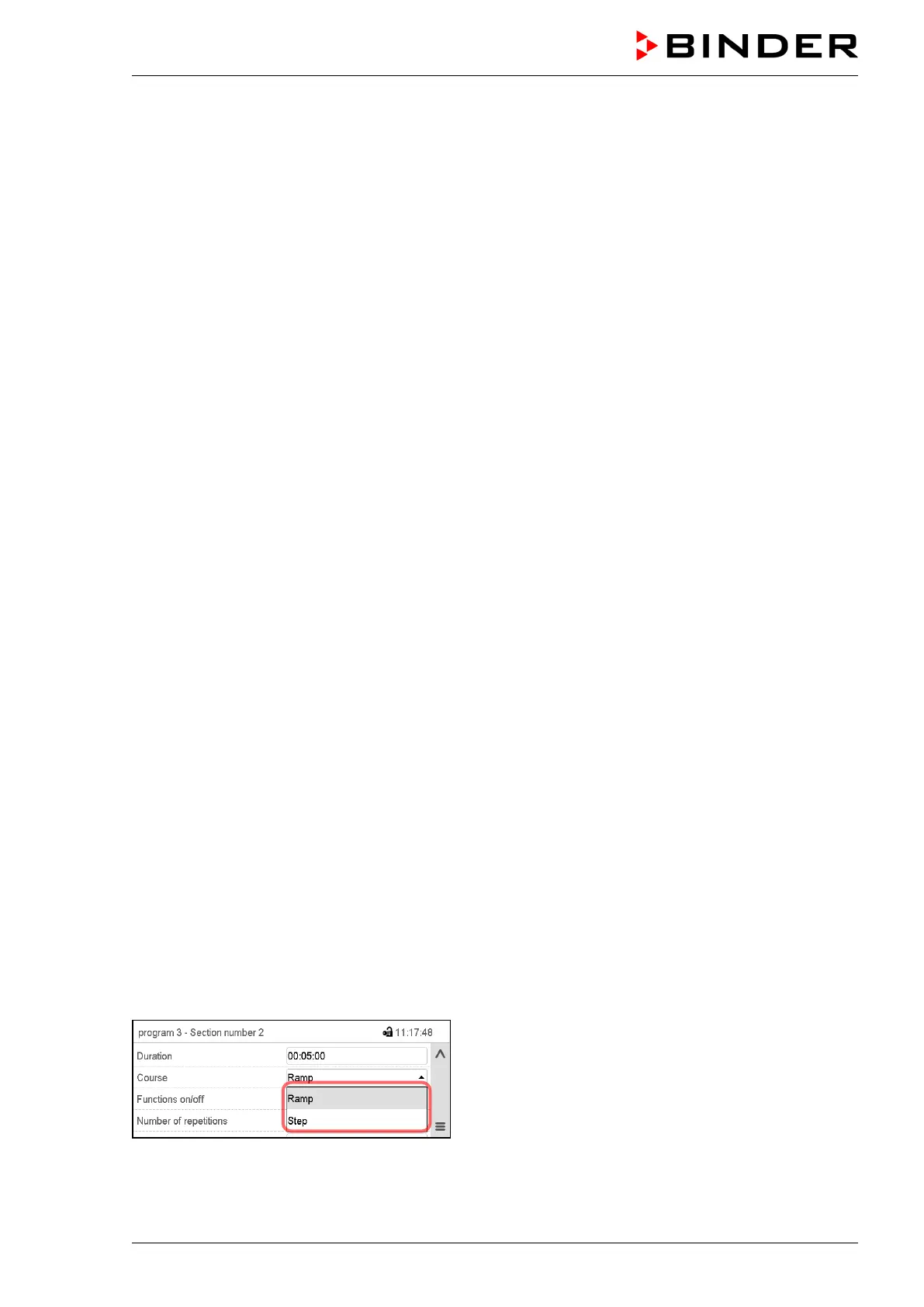 Selecting the setting “Ramp” or “Step”