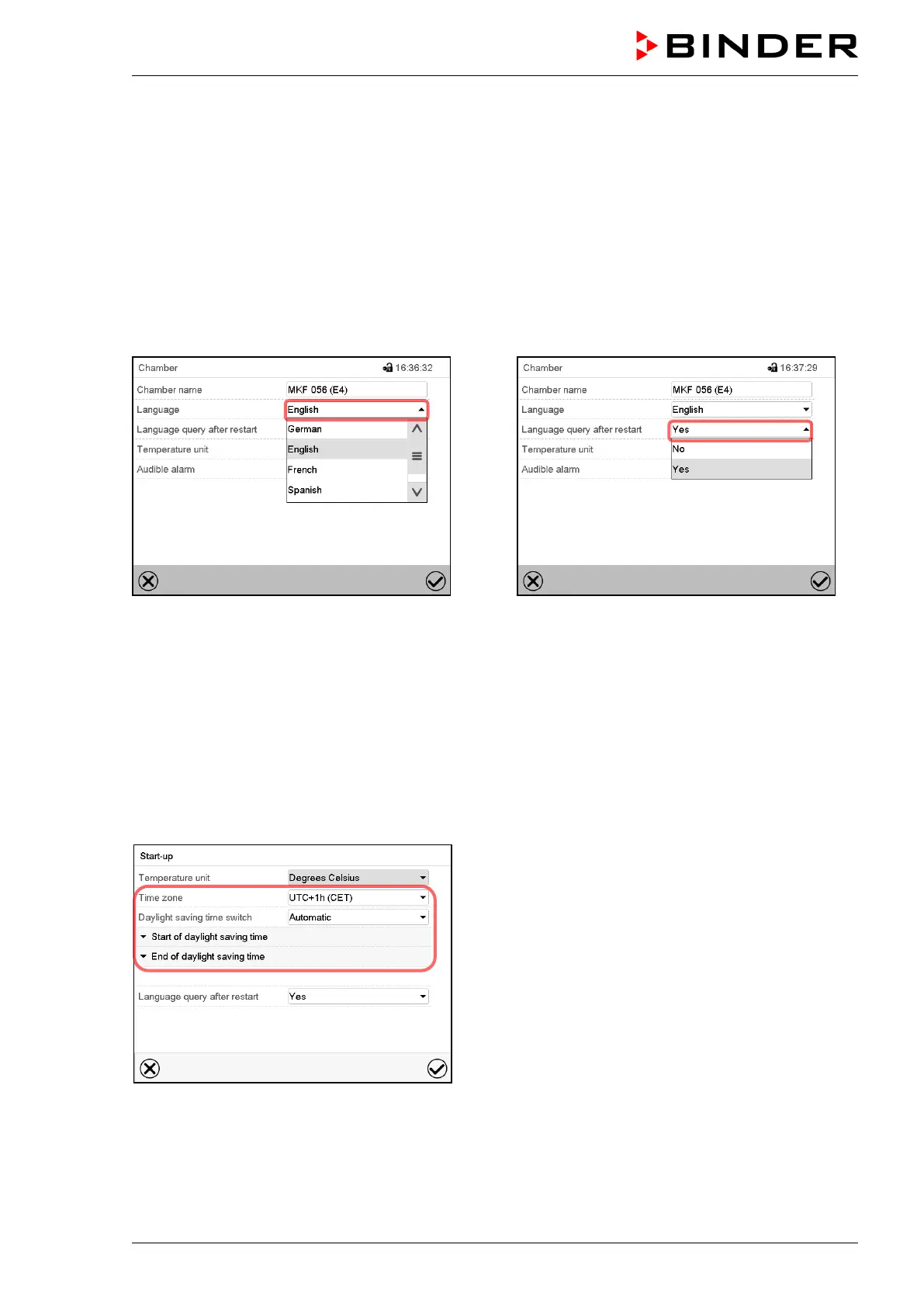 Following start-up of the chamber after language selection: