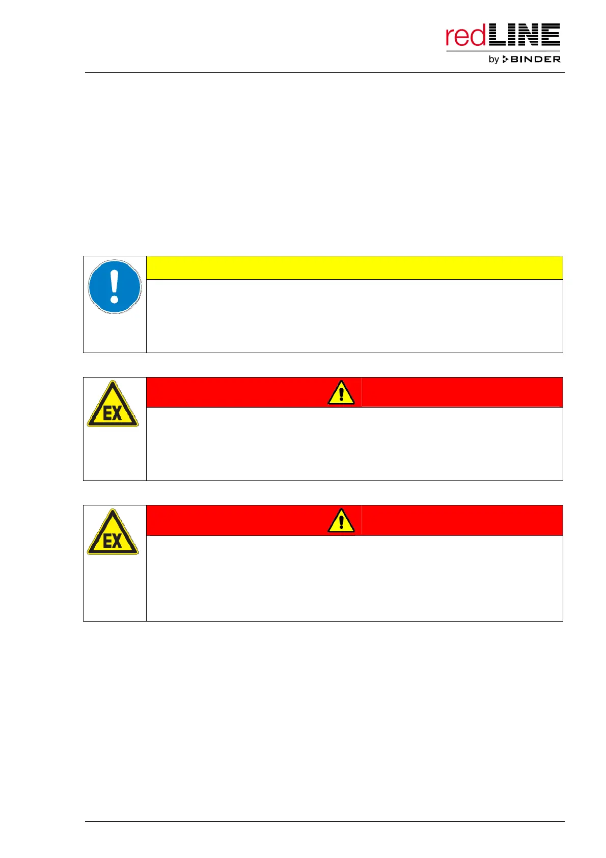 ∅ Do NOT operate redLINE chambers in potentially explosive areas.
