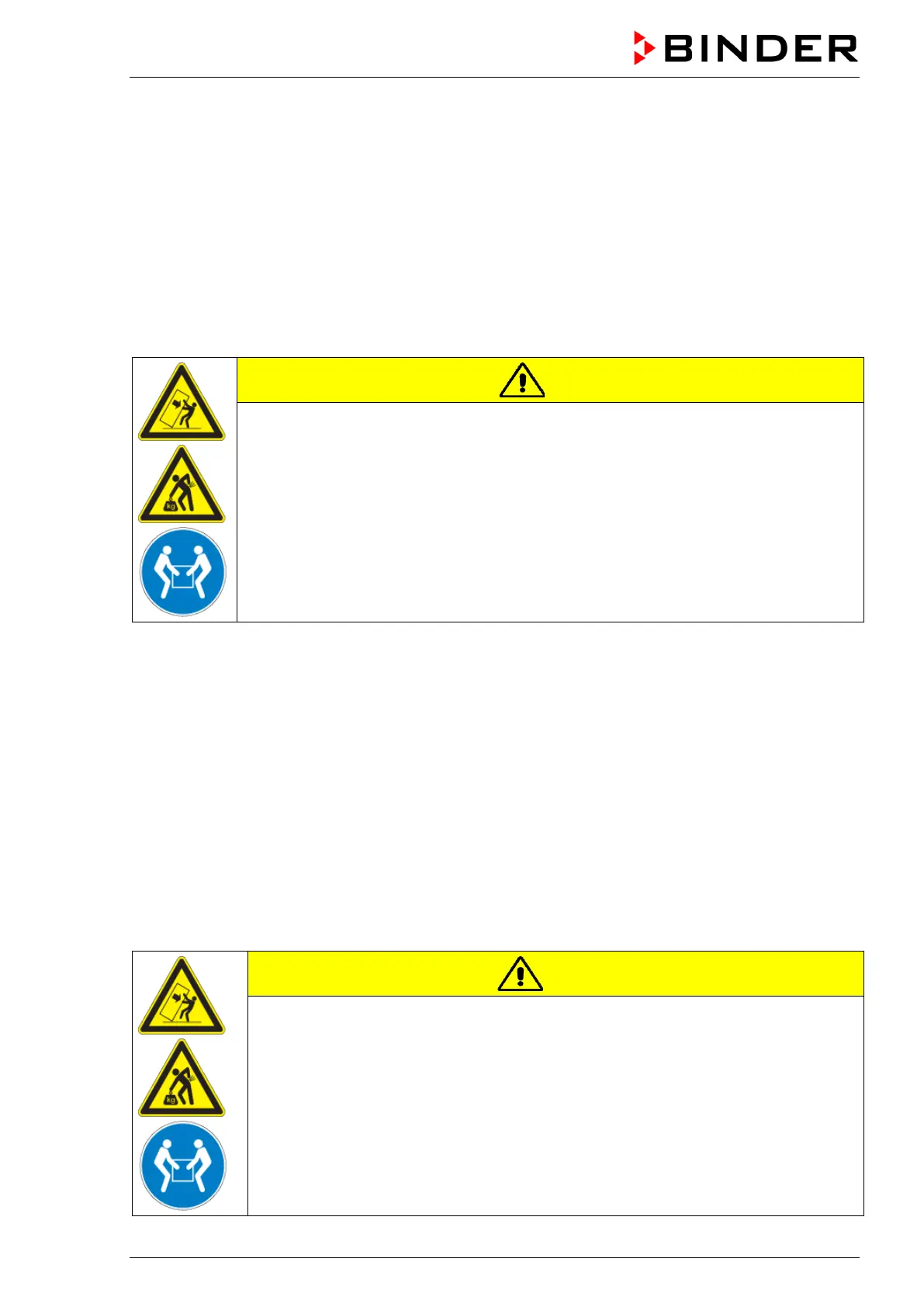 Risk of injury and damages by lifting heavy loads and by sliding or tilting of the