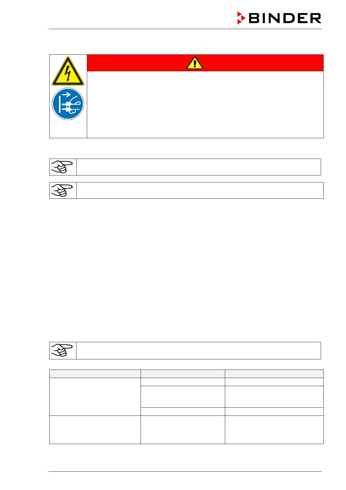 operation and inform BINDER Service. If you are not sure whether there is a technical fault, proceed ac-