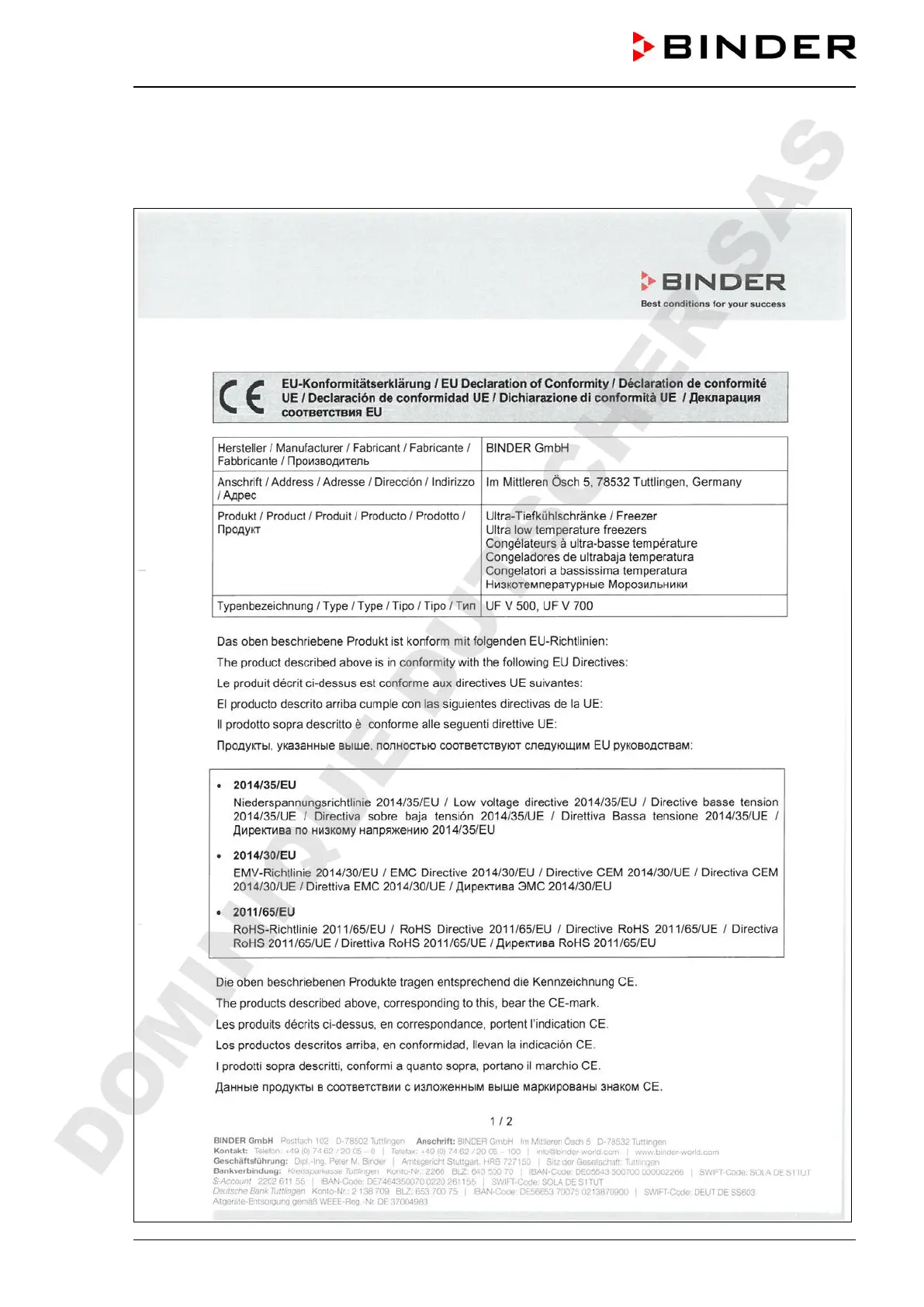 Binder UF V - Certificates and Declarations of Conformity; EU Declaration of Conformity