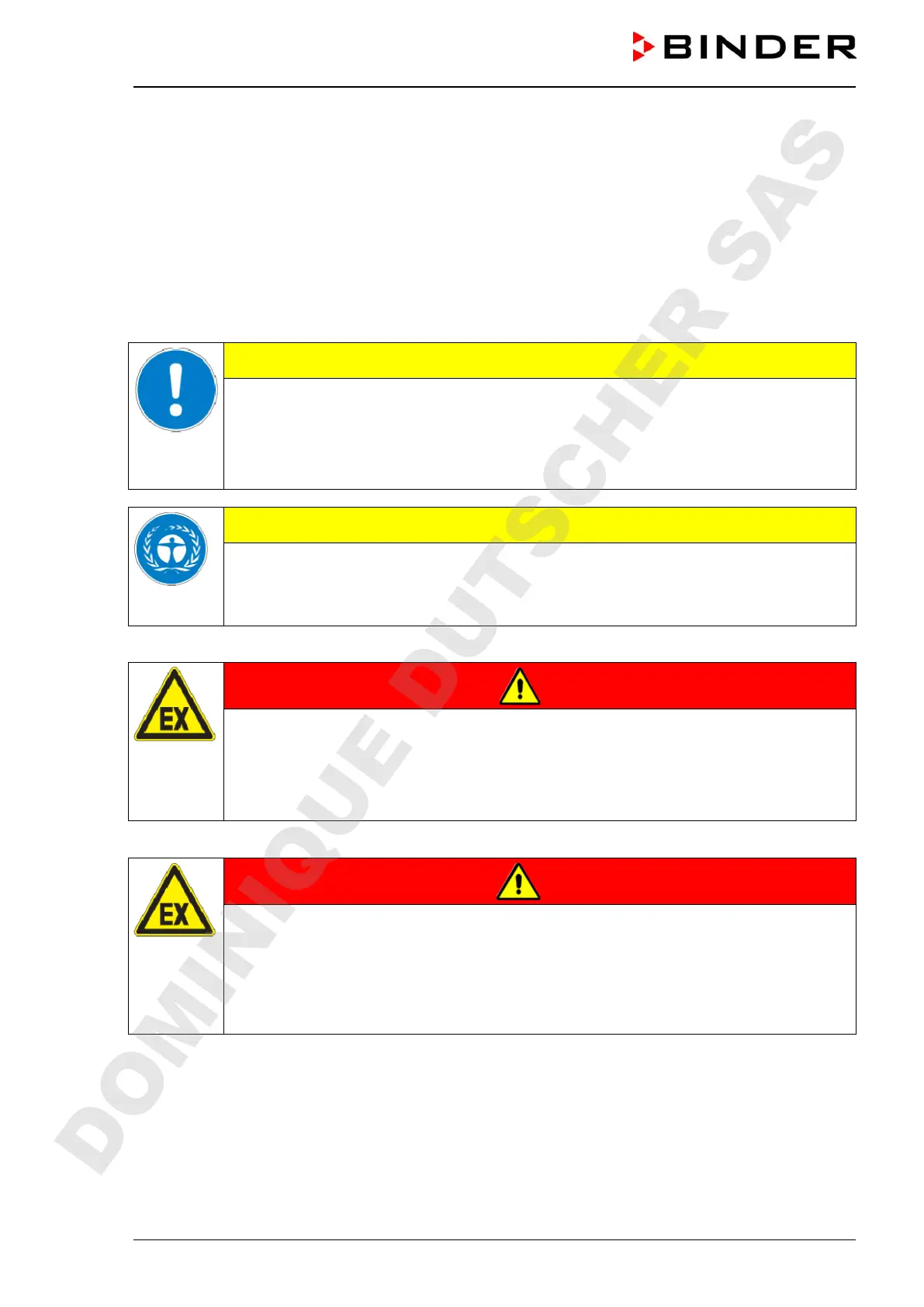 ∅ Do NOT operate the chamber in potentially explosive areas.