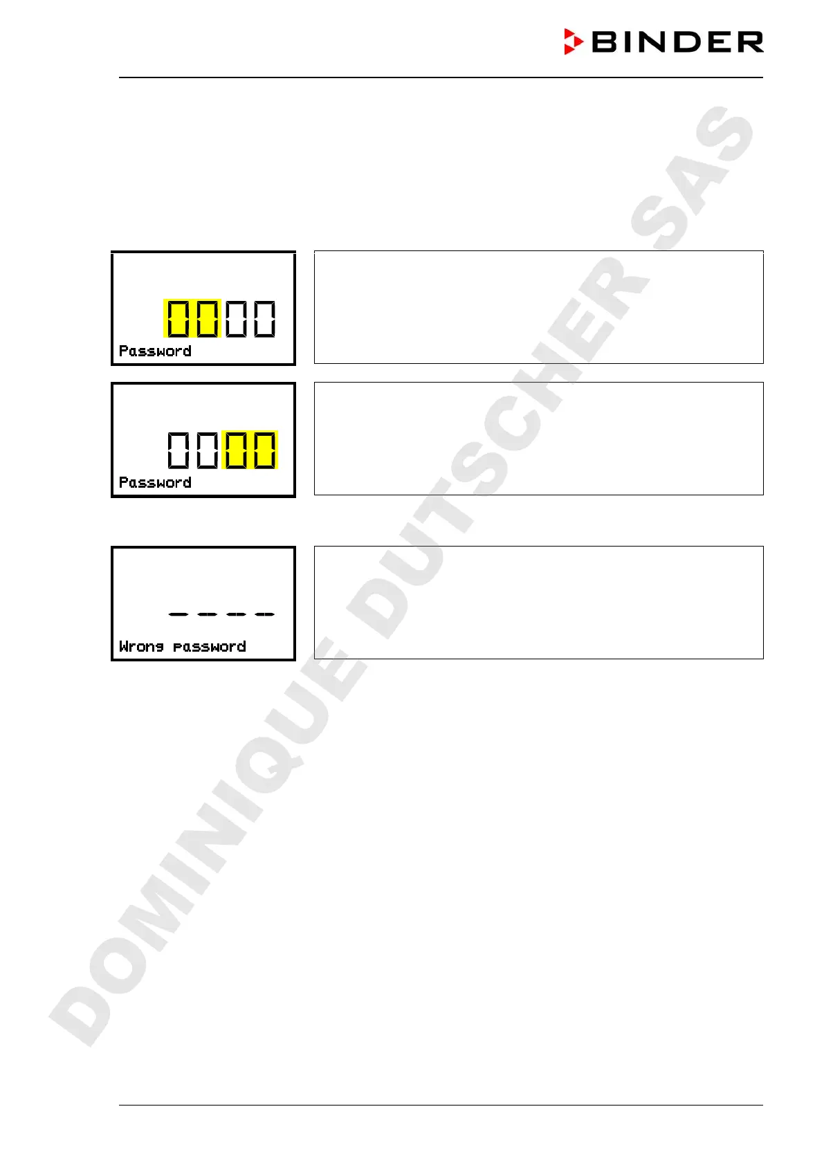 Upon entering an incorrect password, the message “Wrong password” is displayed.