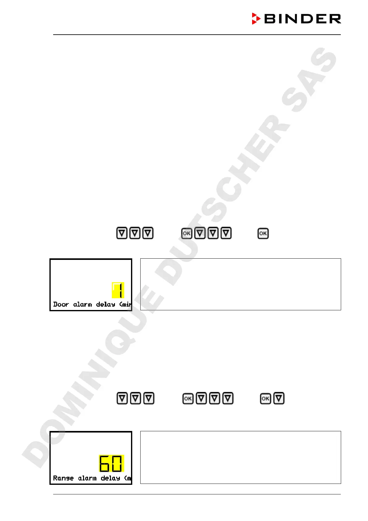 Path: Normal display Settings Various Door alarm delay (min)