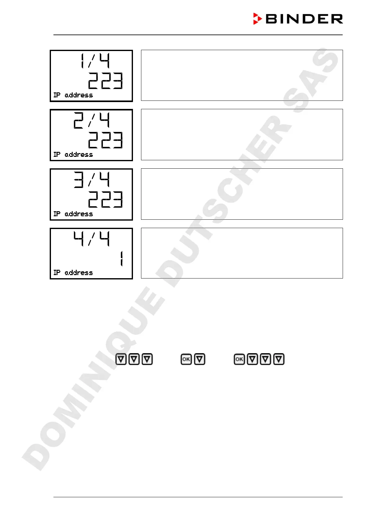 • Use the OK button to select the desired section of the subnet mask 1/4, 2/4, 3/4, 4/4 in the upper dis-