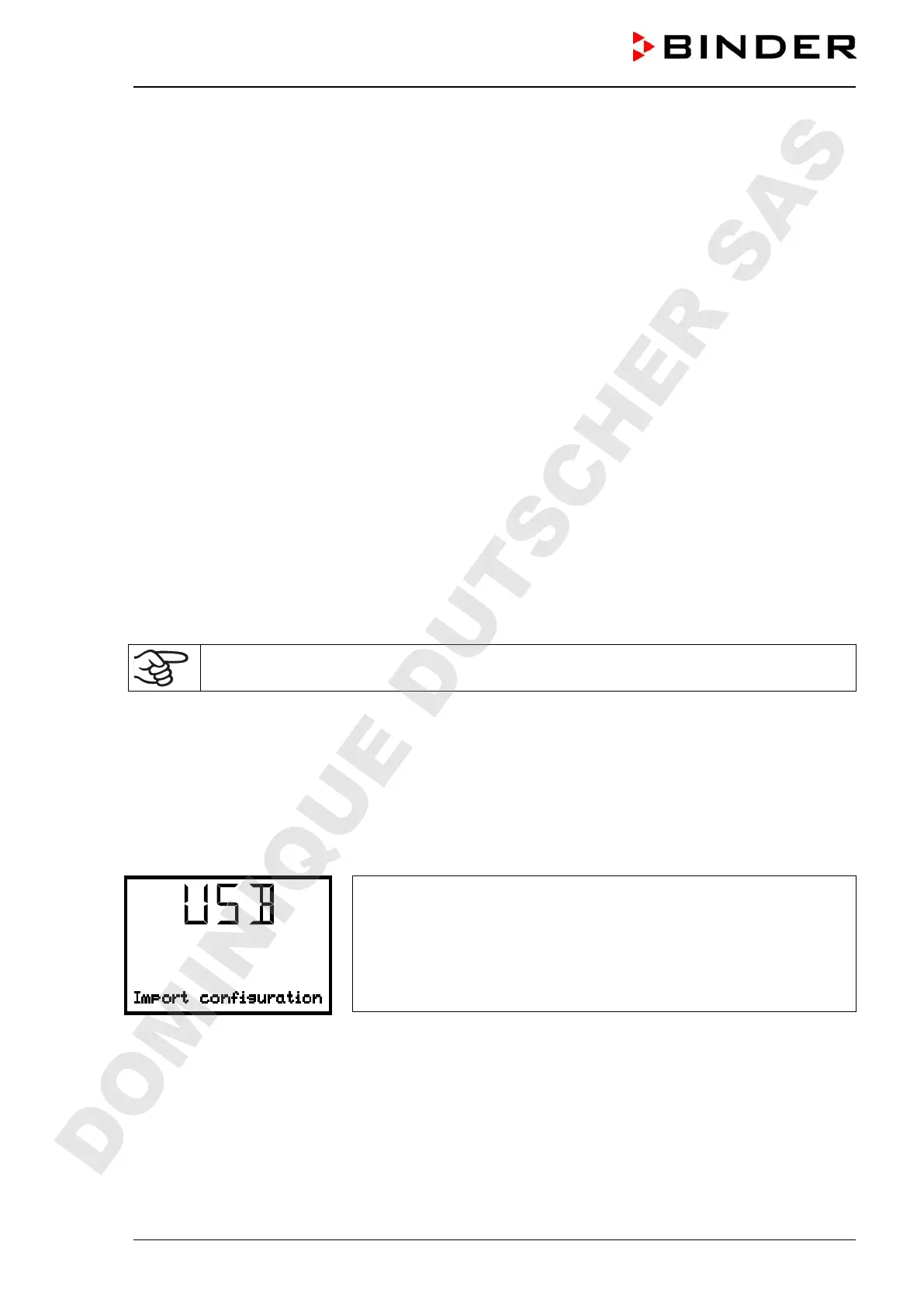 After inserting the USB stick, the initial function “Import configuration” is displayed.