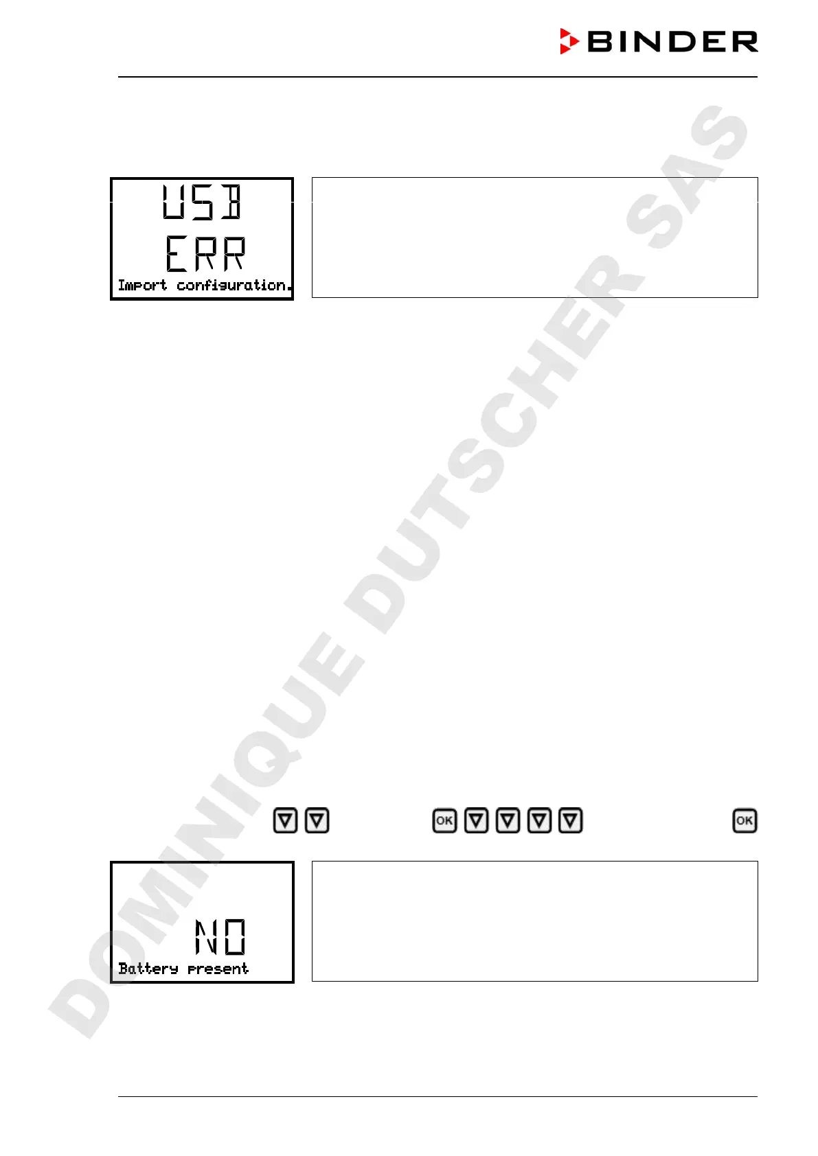 • Display “NO”: no battery detected (Battery missing, completely empty (< 3V), or defective). On line