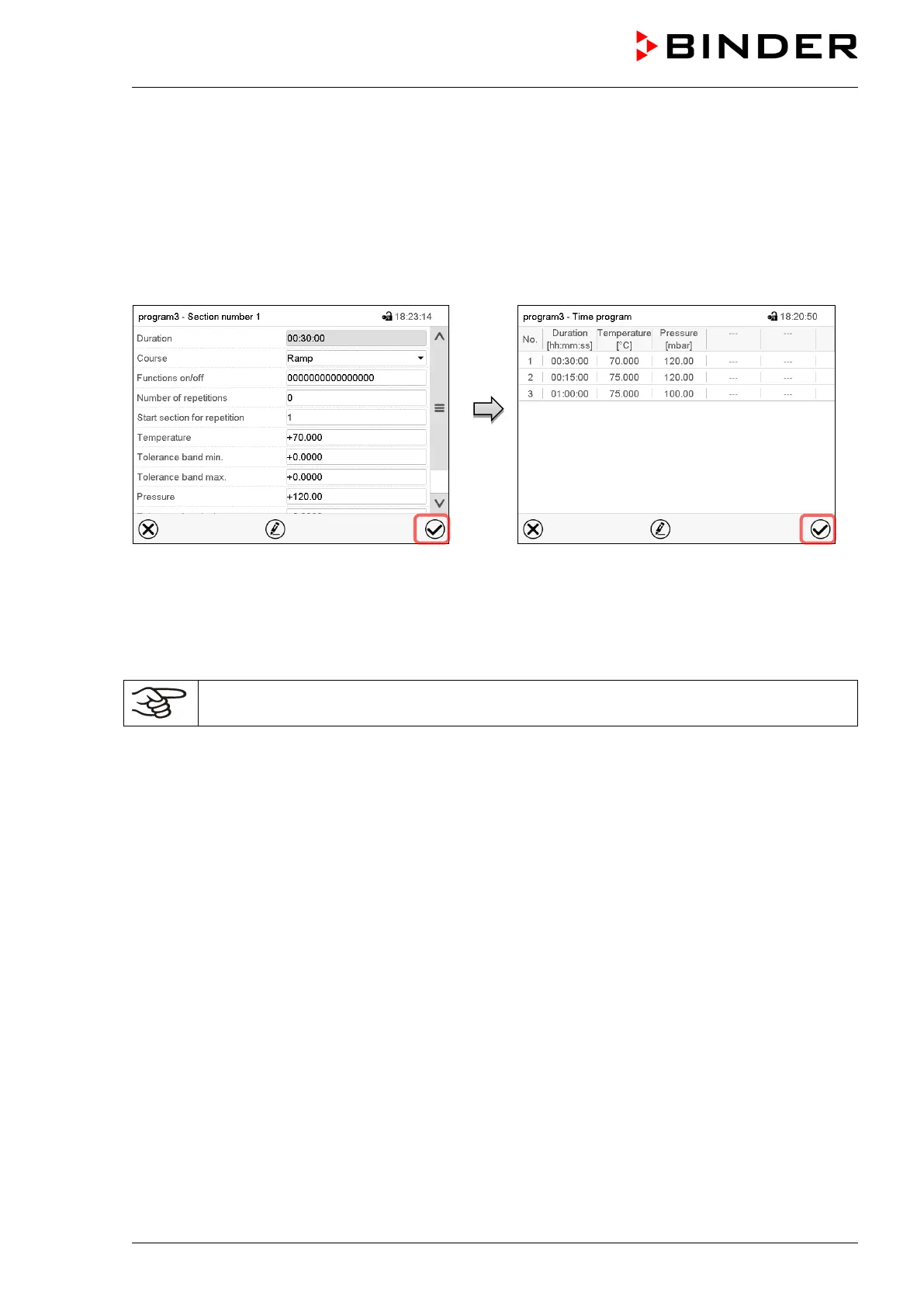 To save the programming it is absolutely required to press the Confirm icon. Otherwise all