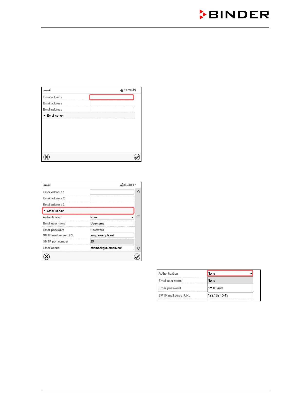 • Select the field “Email sender” and enter the desired Email sender. Confirm entry with Confirm icon.