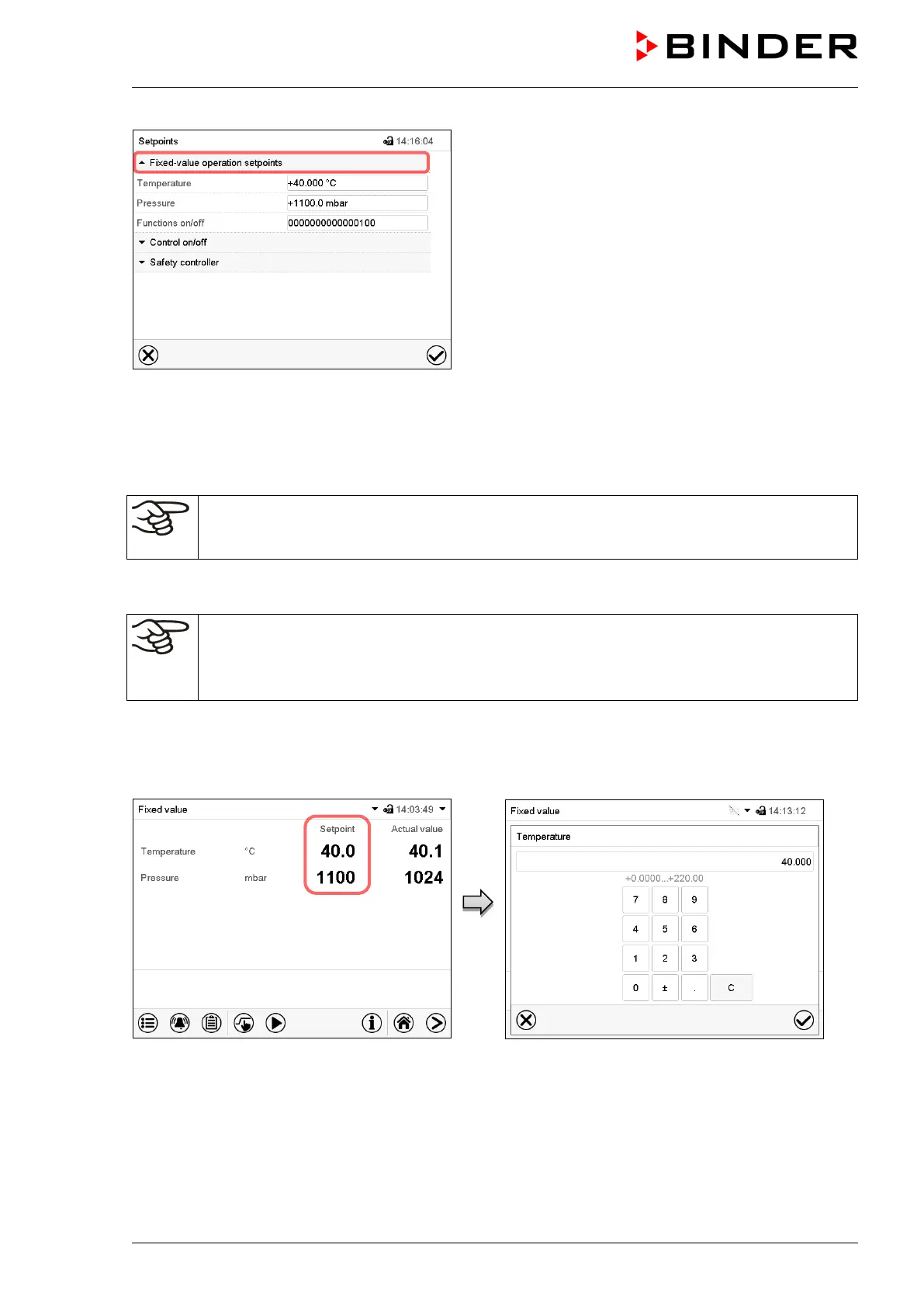 • Select the field “Pressure” and enter the desired pressure setpoint.