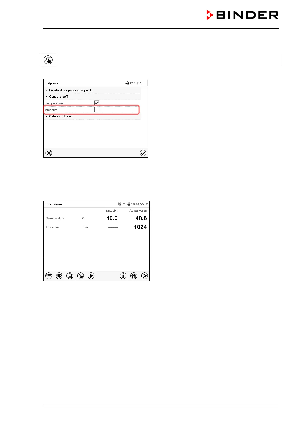 deactivate pressure control and press the Confirm icon