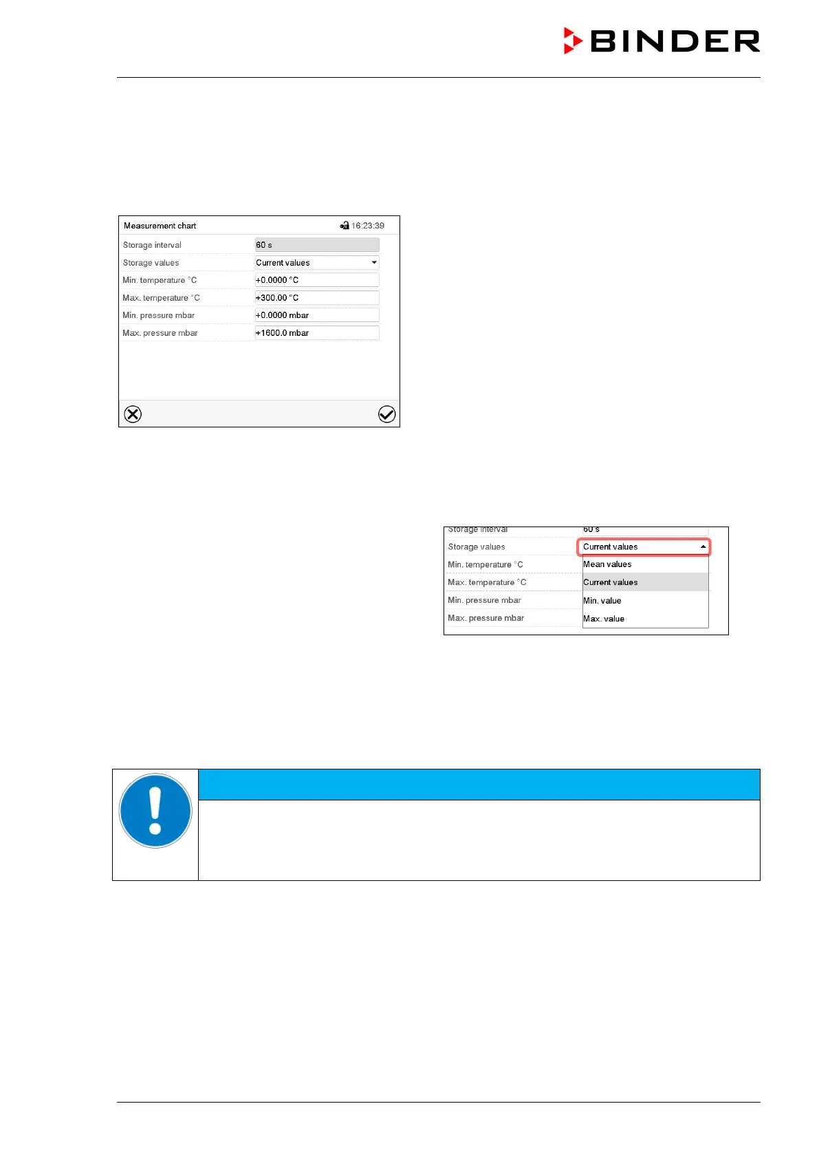 • Select the field “Storage interval” and enter the desired storage interval. Confirm entry with Confirm