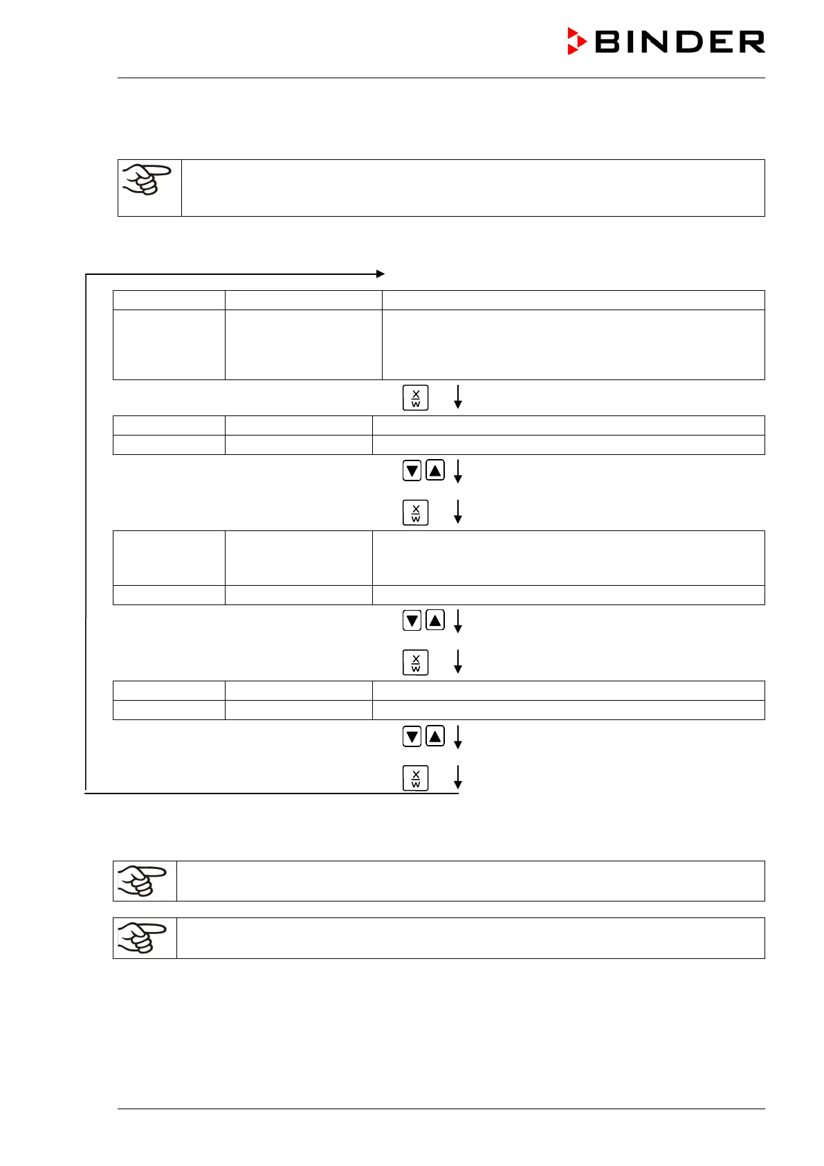 Basic entry principle: Access the individual parameters with button X/W. Enter the value with the arrow