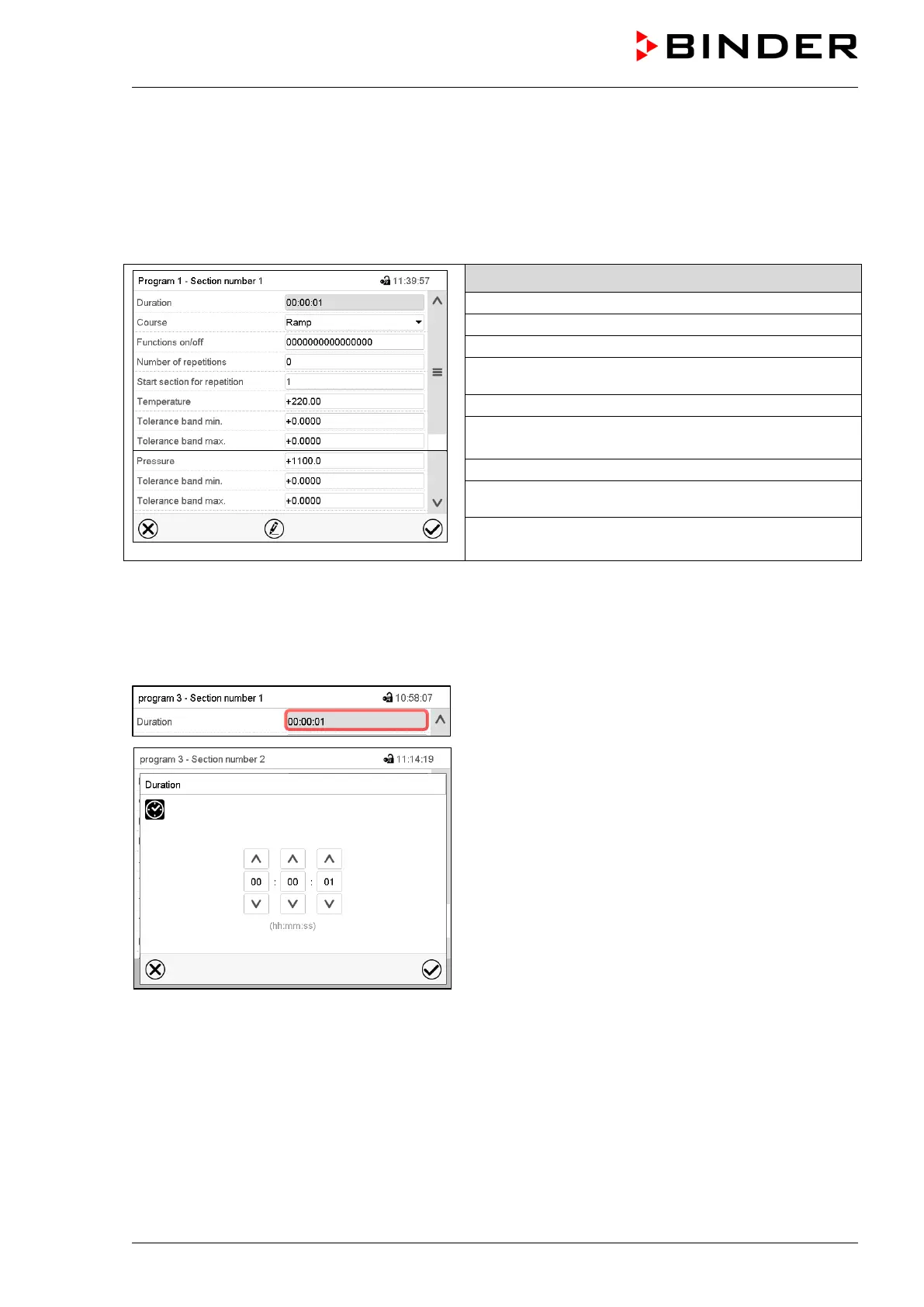 The section view gives access to all parameters of a program section. You can enter or modify the