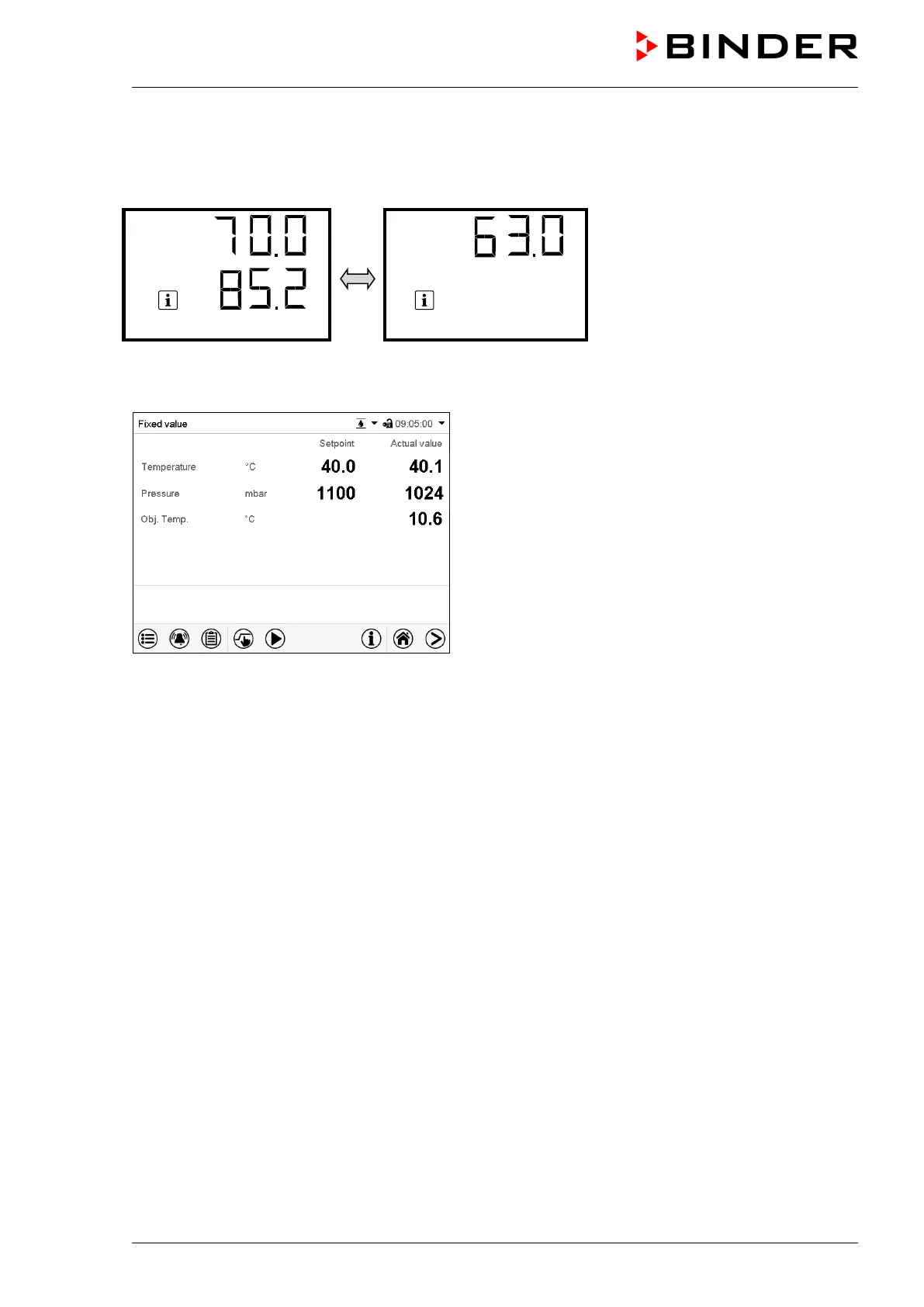 In Normal display, the current actual values and the measures object temperature values are shown