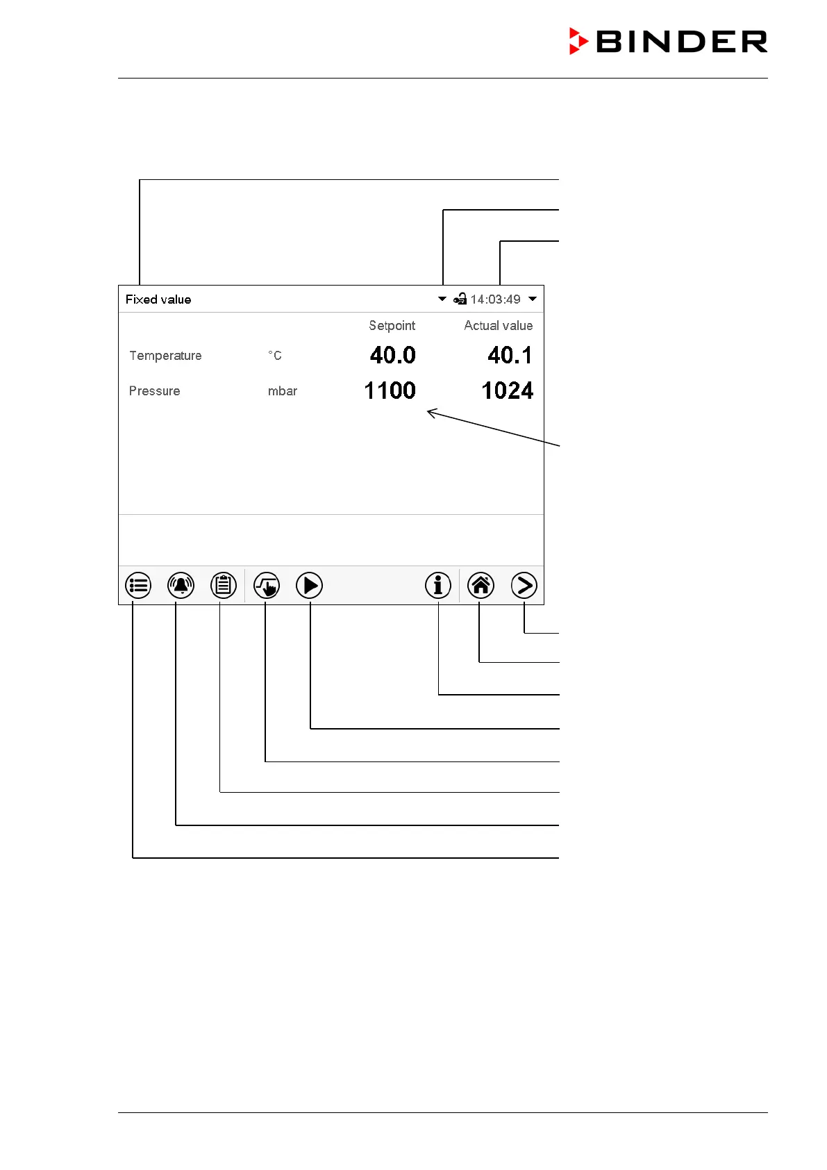 Figure 17: Operating functions of the MB2 controller in normal display (example values)