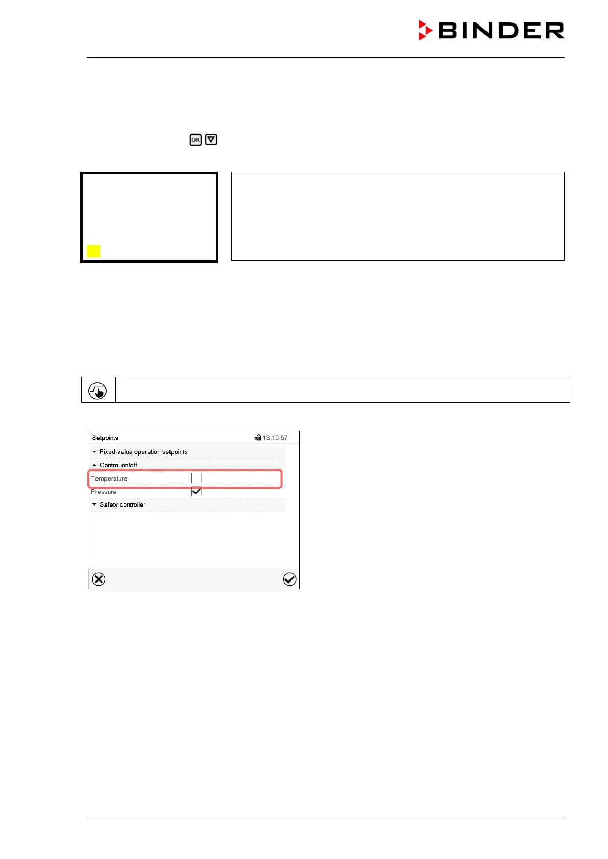 8.5 Activating / deactivating temperature control