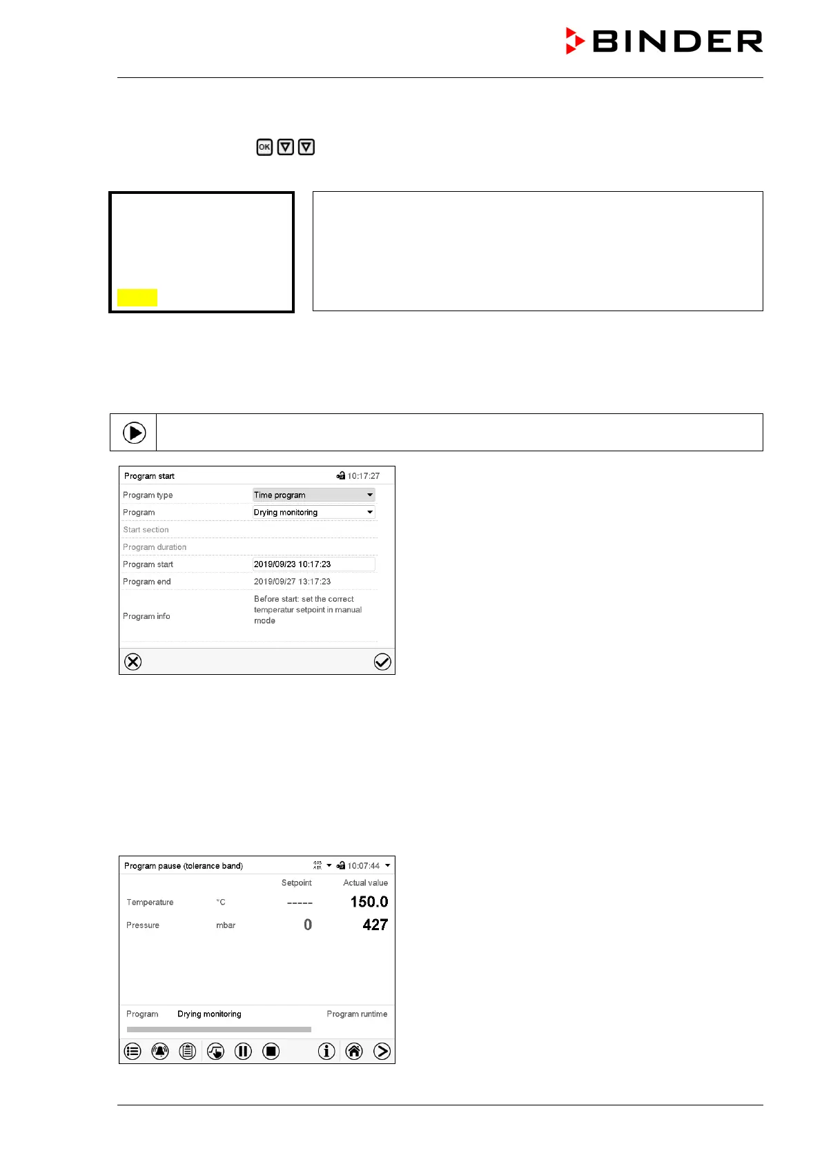 In Normal display press the Program start icon to access the “Program start” menu.