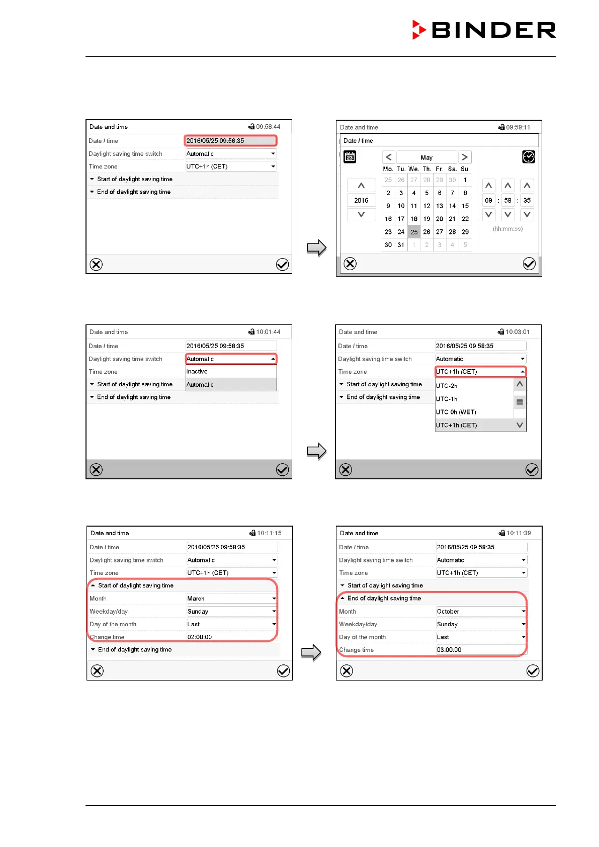 Enter date and time and press the Confirm