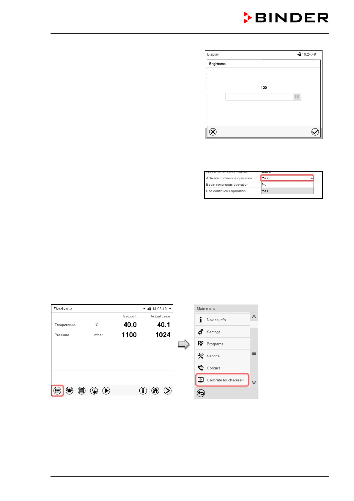 Select “Calibrate touchscreen” and follow the instructions on the display.