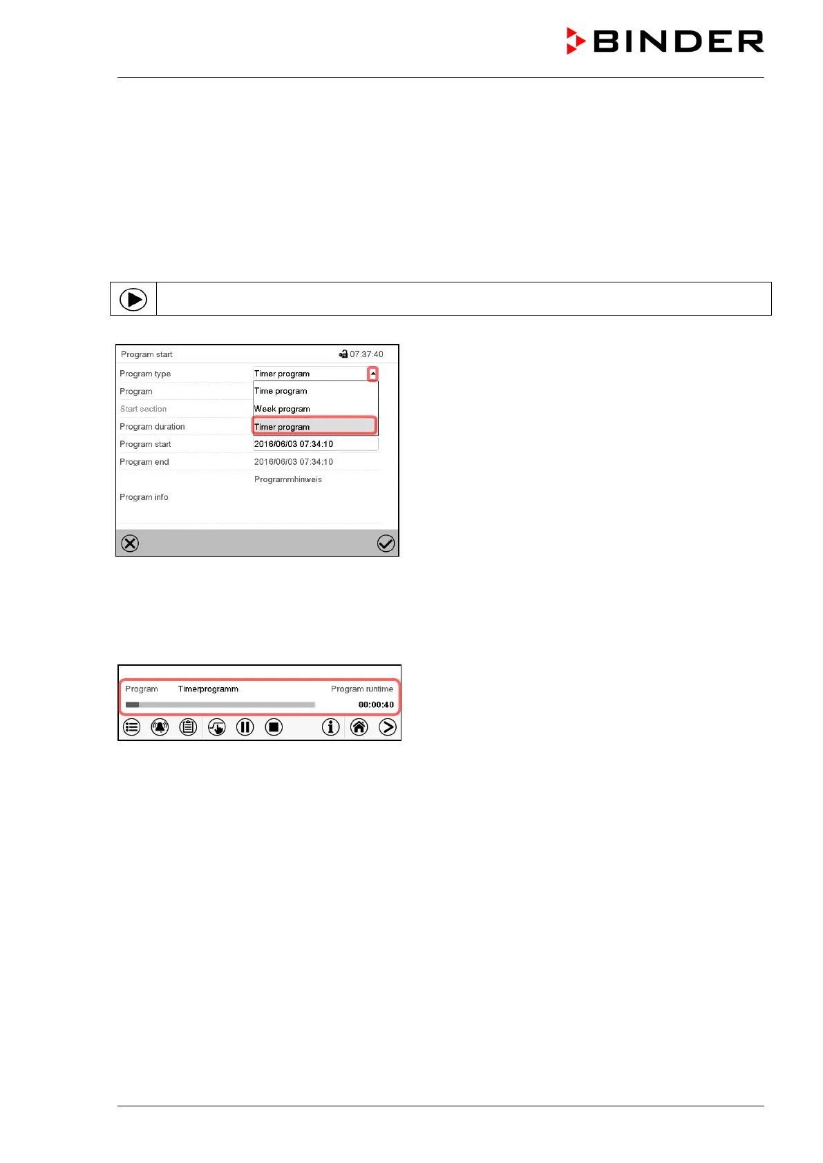 can be entered as a “Timer program”. During the program runtime, any setpoint changes do not become