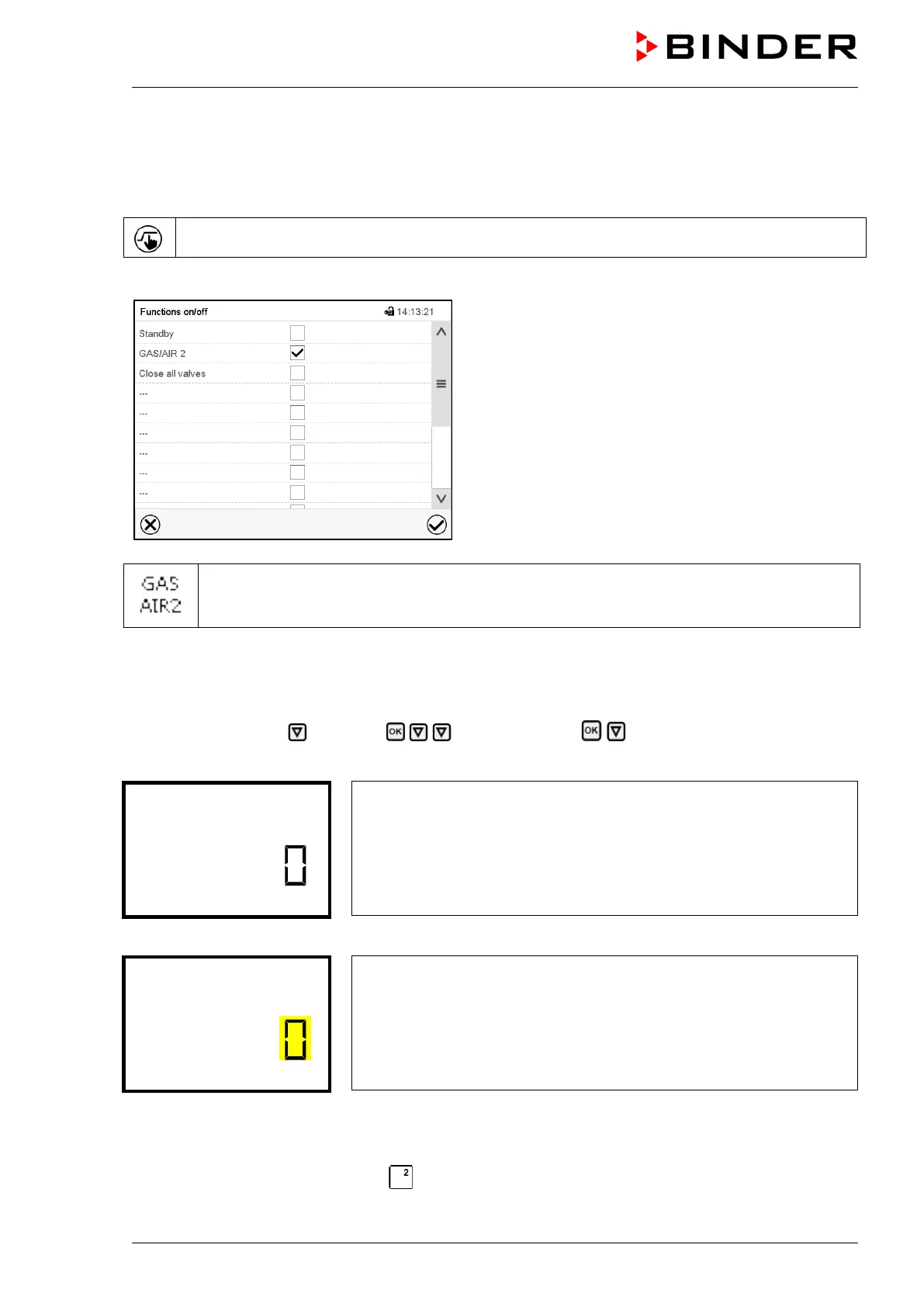 “0” (Use valve for connection “GAS/AIR”) and “1” (Use valve for