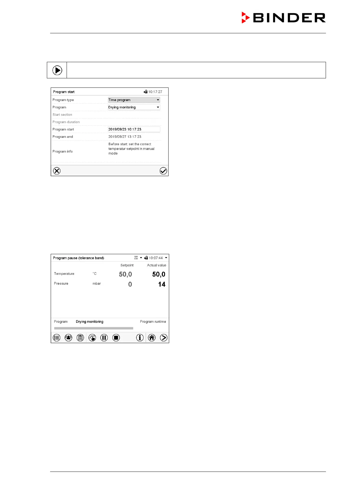 • Select the field “Program start” and enter the desired program start time in the “Program start” entry