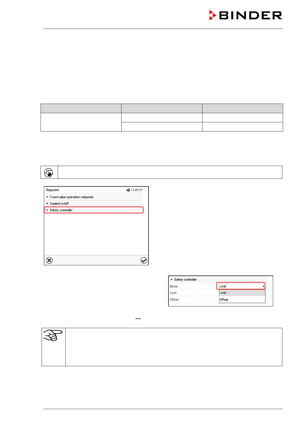 Regularly check the safety controller setting for set-point type “Limit” or “Offset”