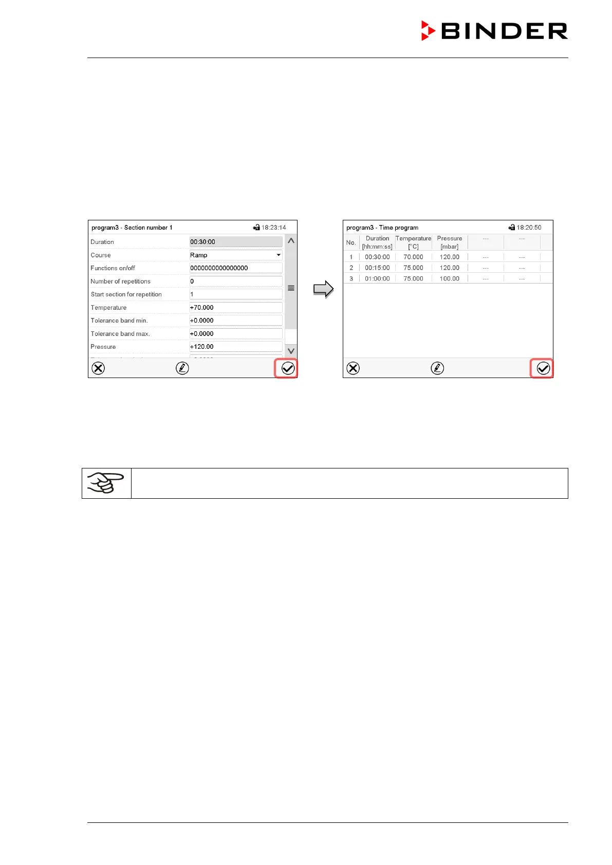 To save the programming it is absolutely required to press the Confirm icon. Otherwise all