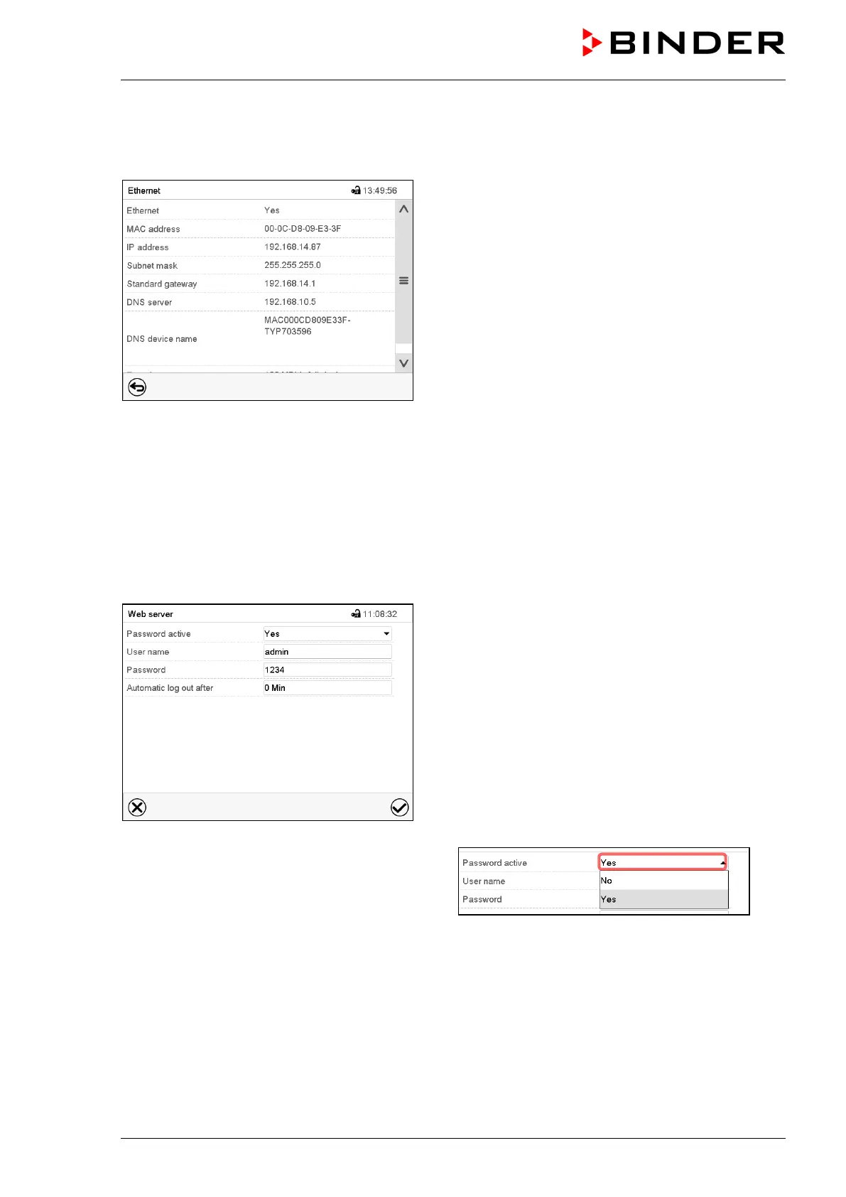 the Internet. The IP address is available via Chamber information > Ethernet. The BINDER web server