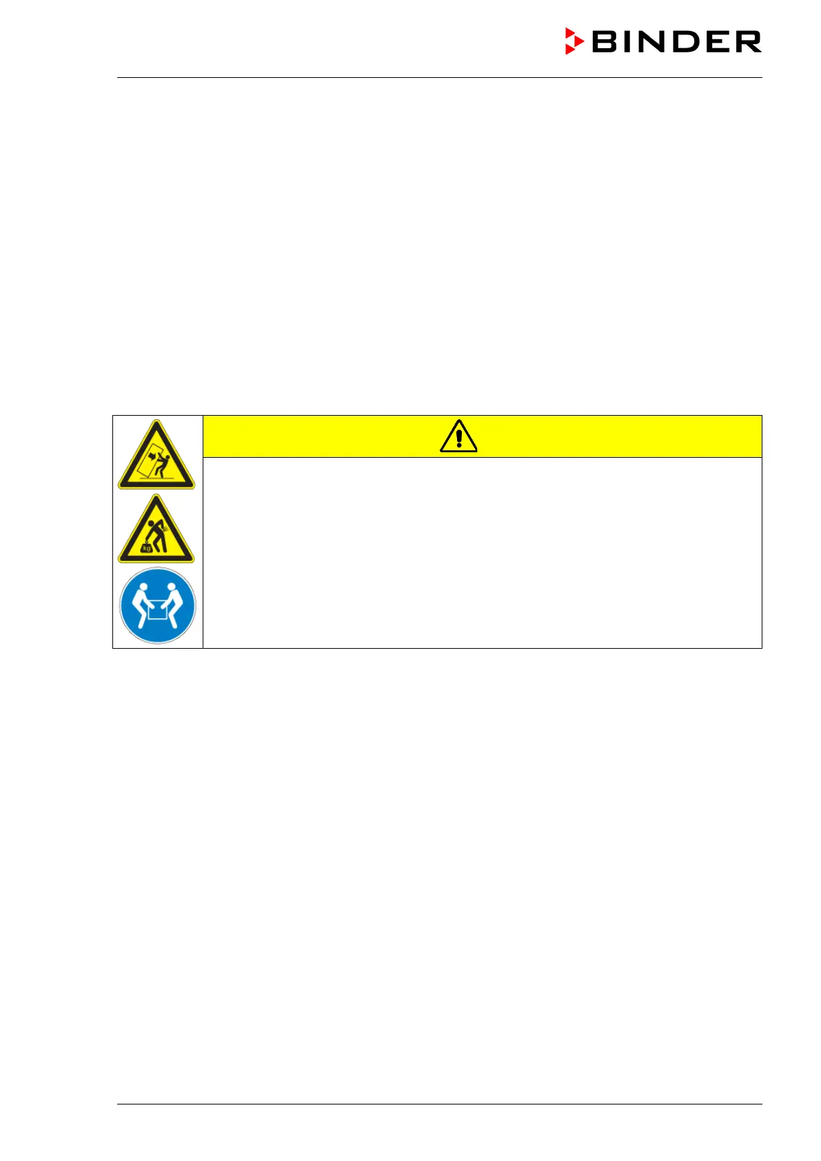 Risk of injury due to sliding or tilting of the chamber in case of improper lifting.