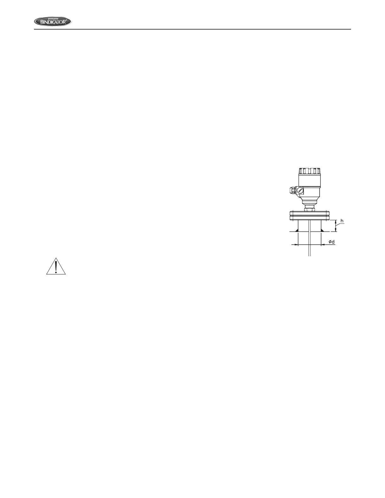 b. Do not install unit close to material entry flow. Pouring the product directly onto the cable probe will