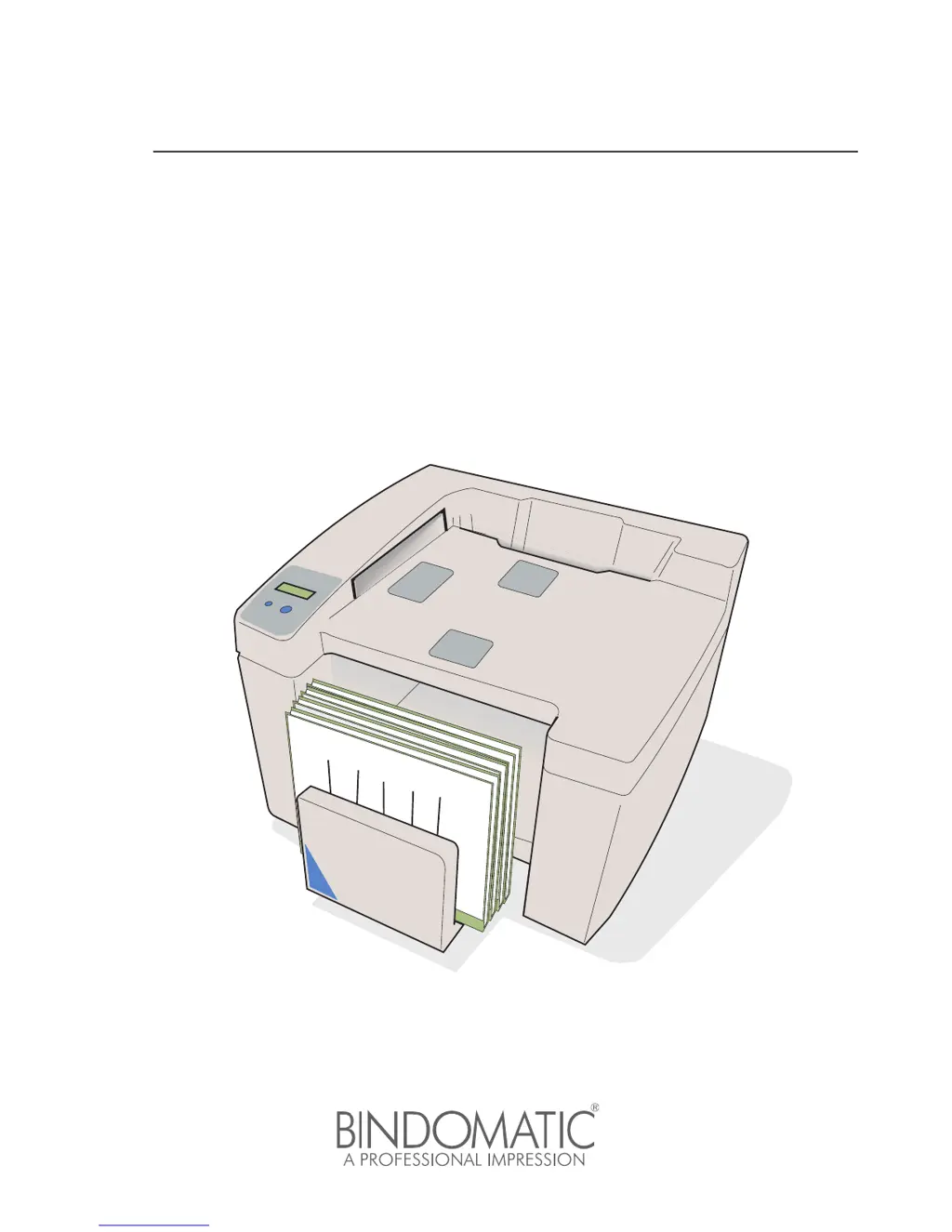 If the red LED illuminates, the buzzer sounds, and the BINDOMATIC Printer stops with the message 'OUTPUT TRAY FULL EMPTY TRAY', it means the output tray is full. Remove the documents from the output tray to allow the machine to continue processing the documents already inserted.