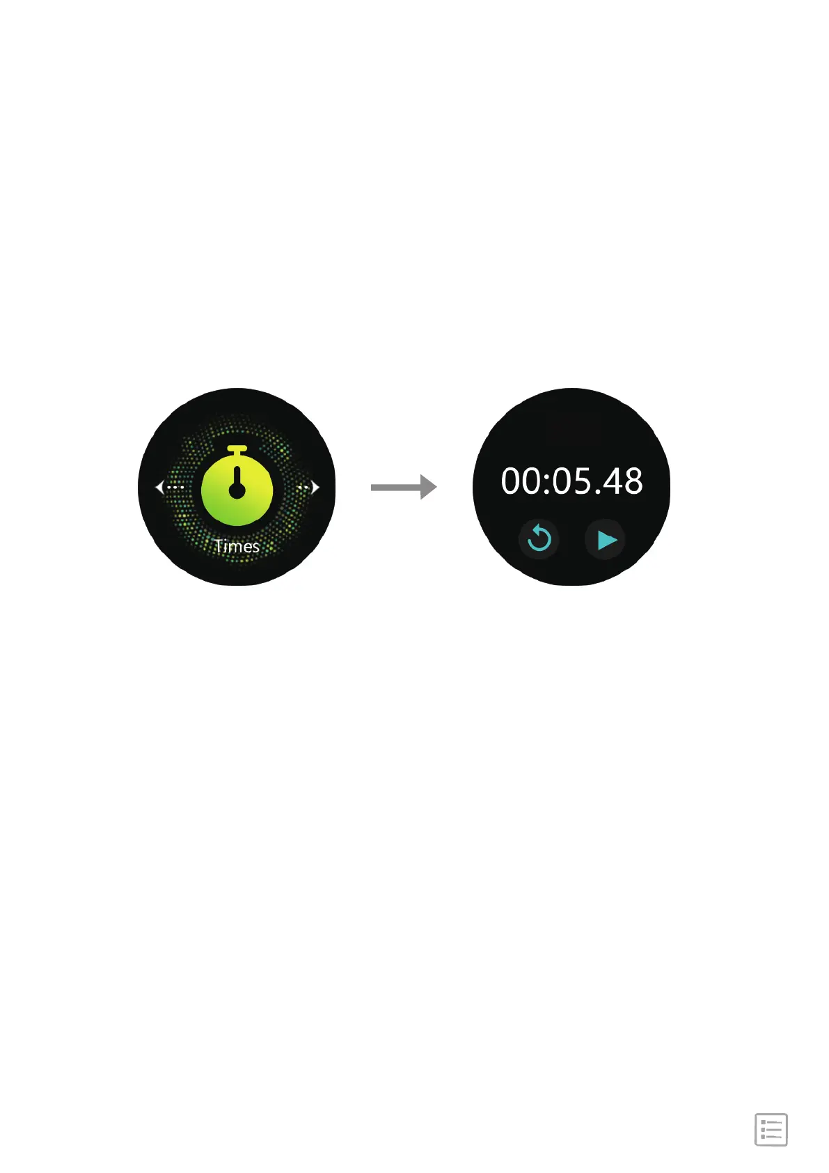 To use the stopwatch: In the watch main interface → swipe right