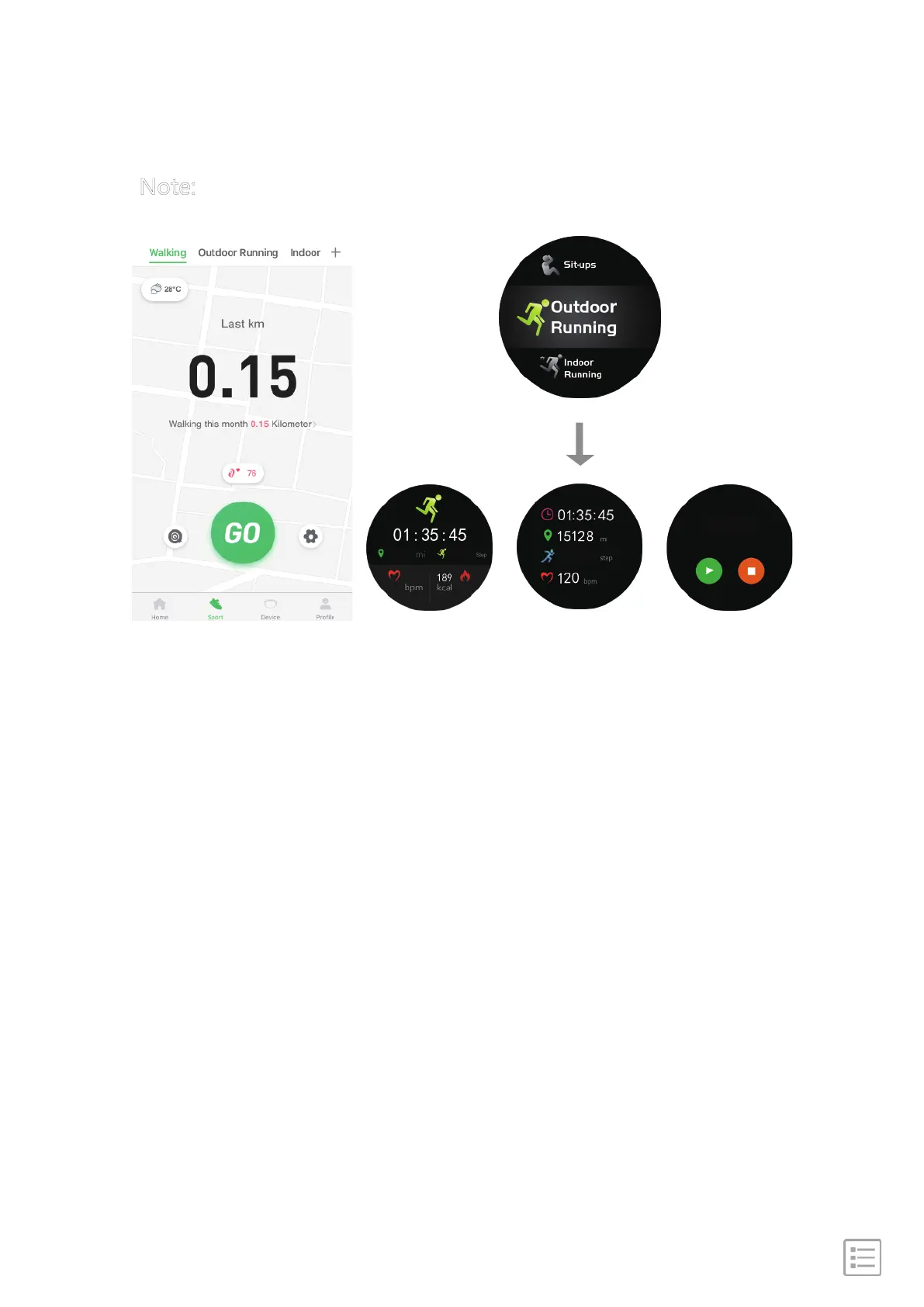 stats. You can choose sport mode on watch or on the app.