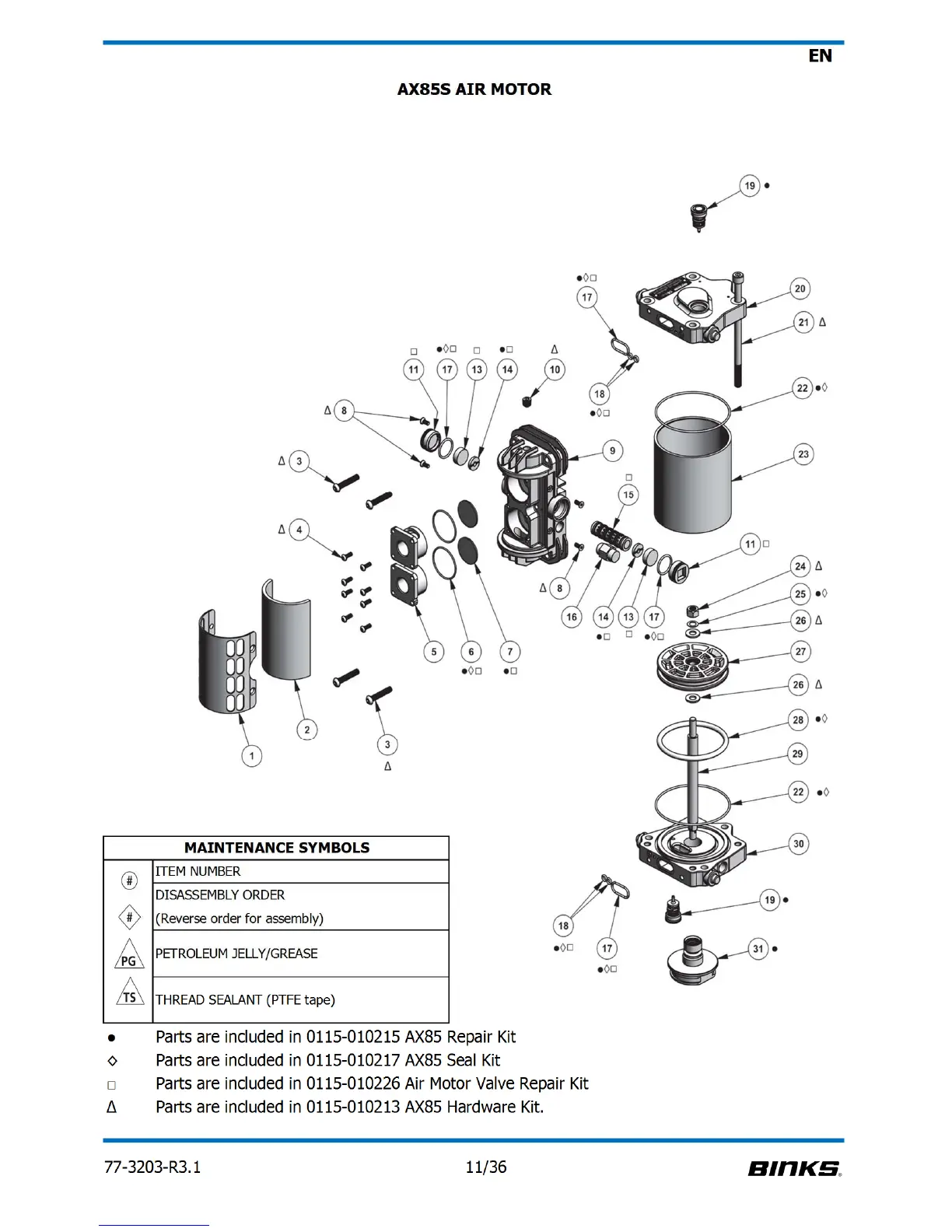 Parts are included in 0115-010226 Air Motor Valve Repair Kit