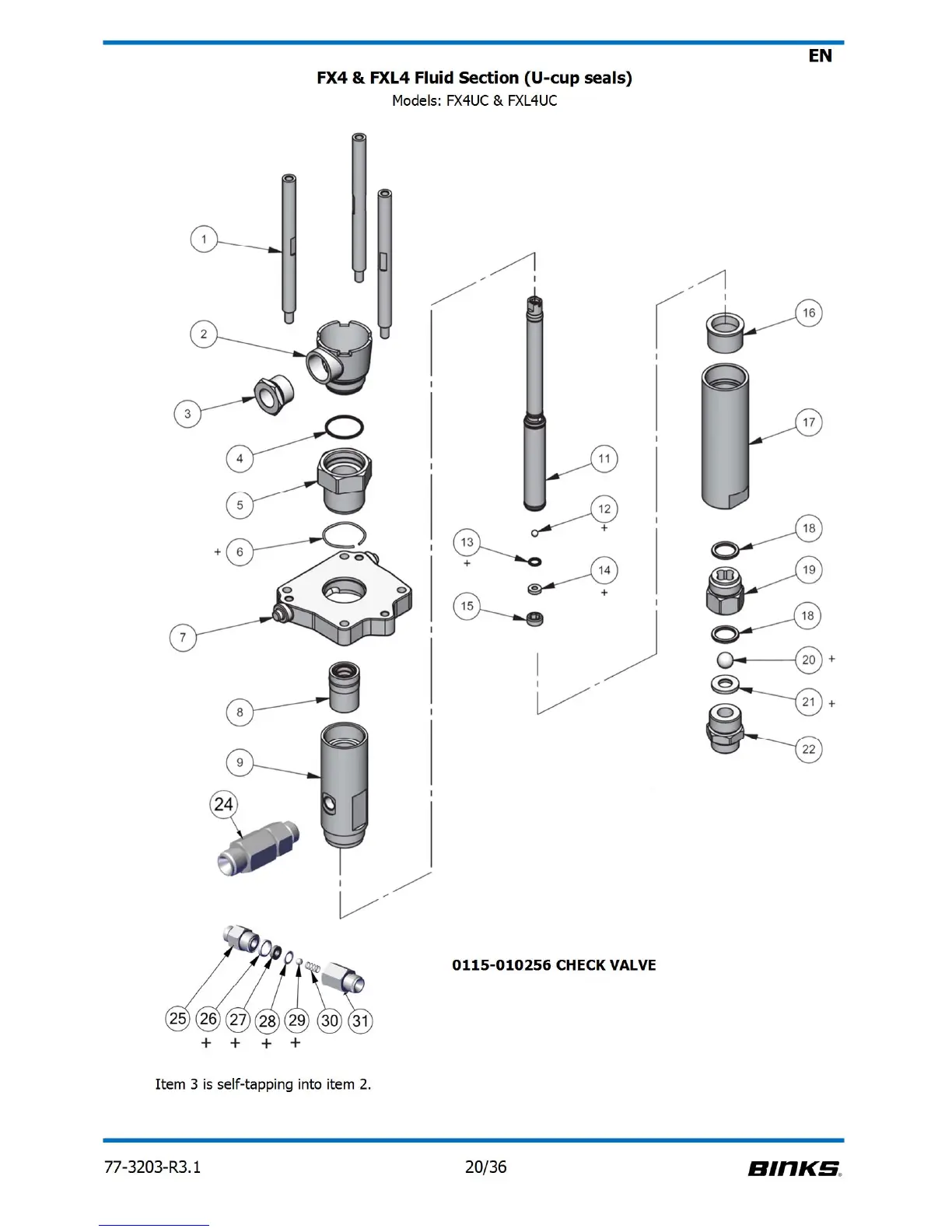 FX4 & FXL4 Fluid Section (U-cup seals)