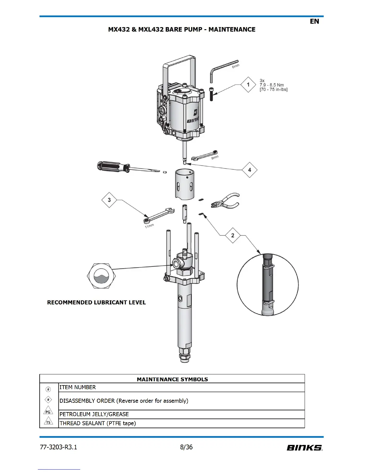 MX432 & MXL432 BARE PUMP - MAINTENANCE