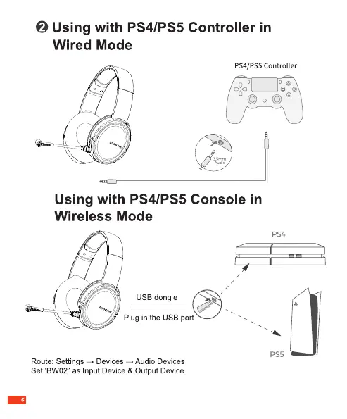 BINNUNE BW02 - PS4;PS5 Controller Wired Mode Setup; PS4;PS5 Console Wireless Mode Setup