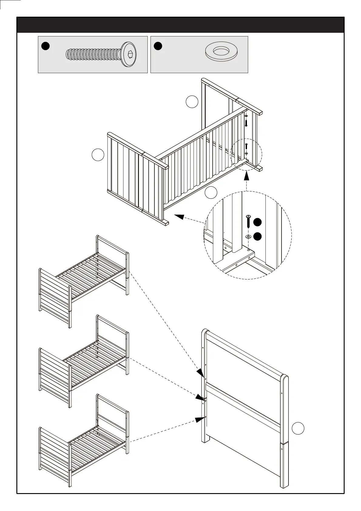 BINO Hampton Cot bed - Cot Mode Assembly Steps; Step 1: Initial Side Attachment