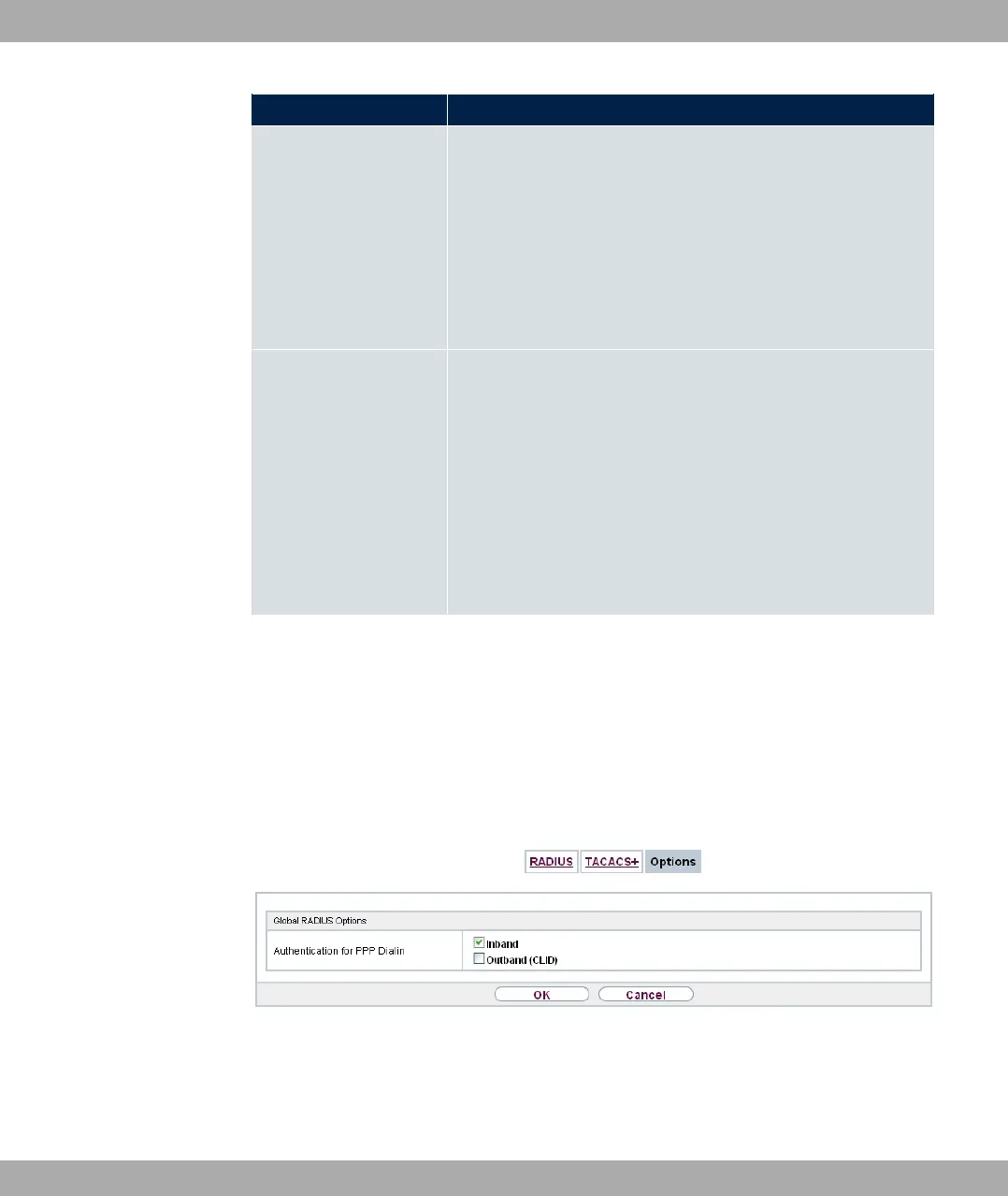 The menu System Management->Remote Authentication->Options consists of the fol-