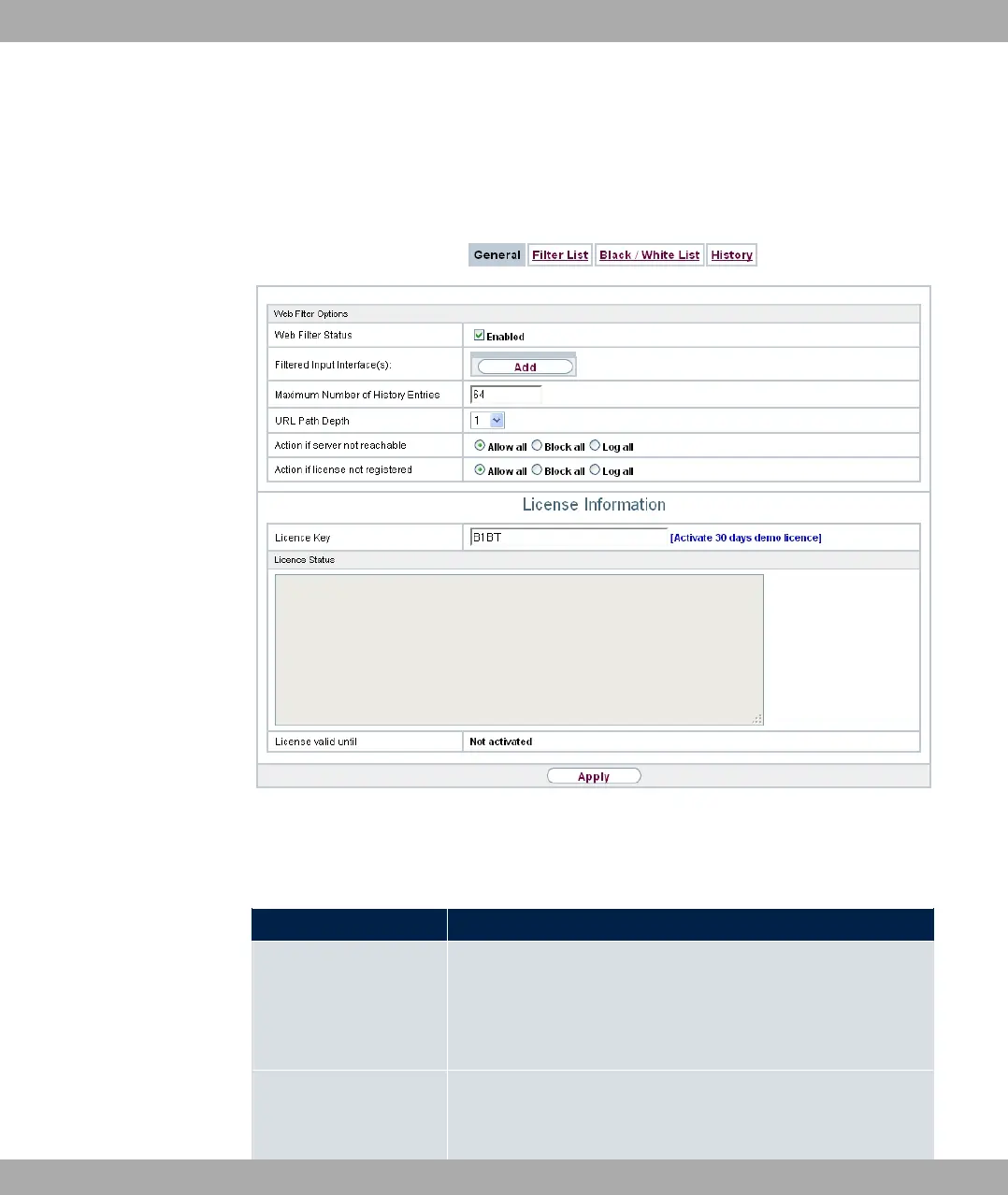 The Local Services->Web Filter->Generalmenu consists of the following fields: