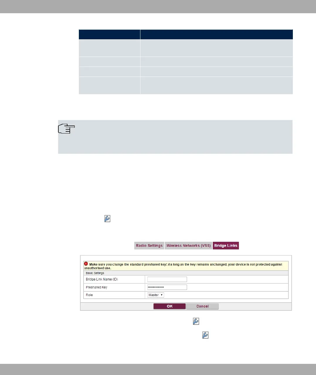 Fig. 69: Wireless LAN->WLAN->Bridge Links-> ->New