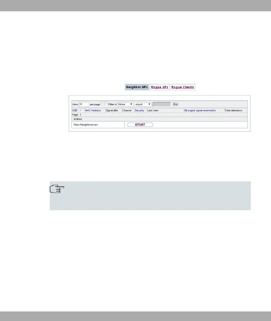 cent AP's found during the scan are displayed. Rogue APs, i.e. APs which are not man-
