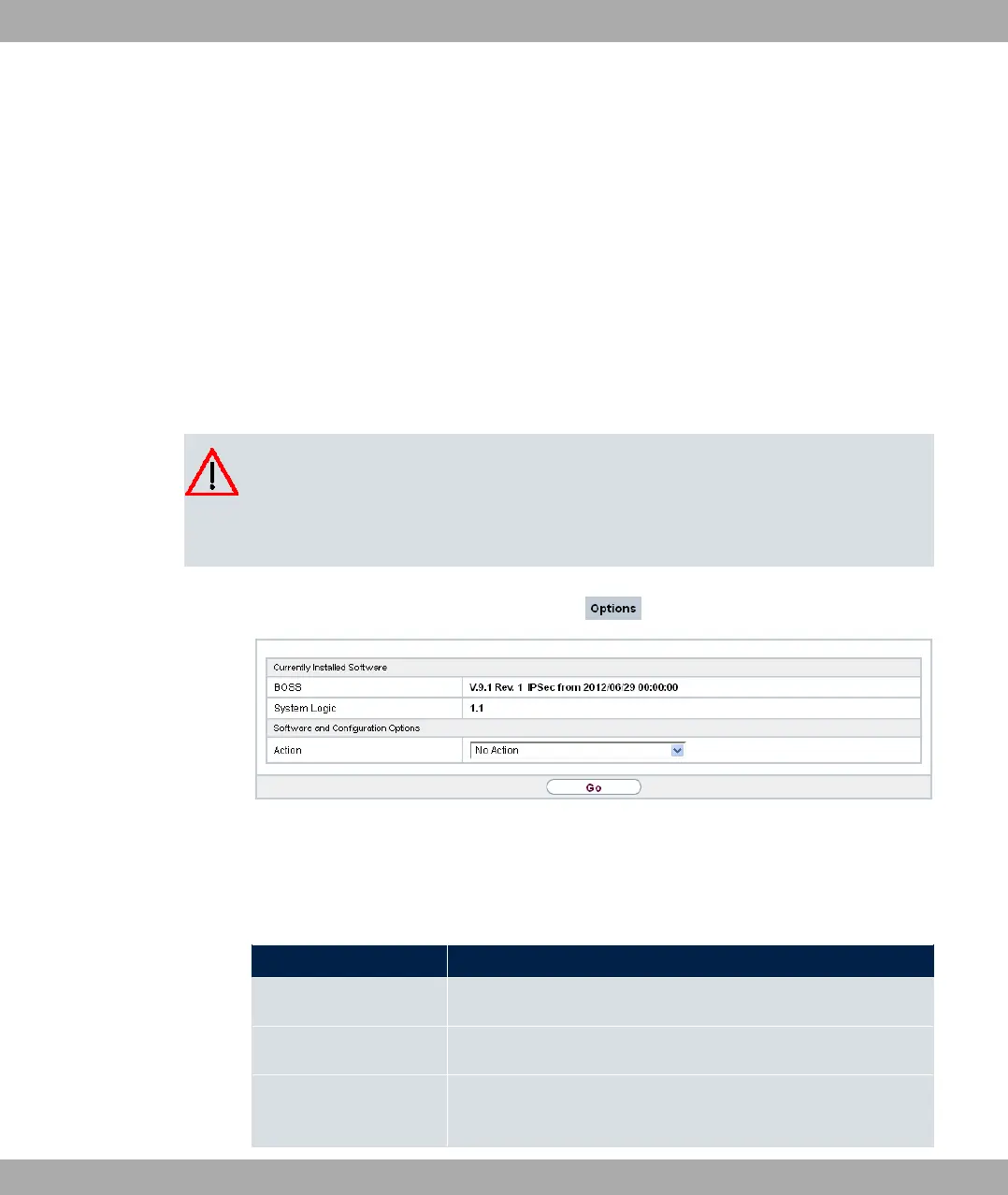 The Maintenance->Software &Configuration->Options menu consists of the following