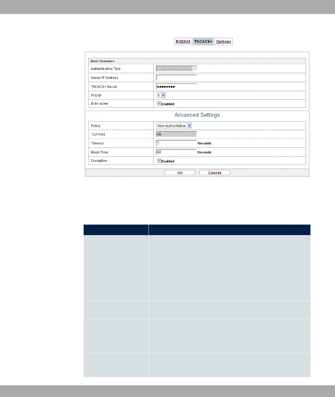 TACACS+ Secret Enter the password to be used to authenticate and, if applic-