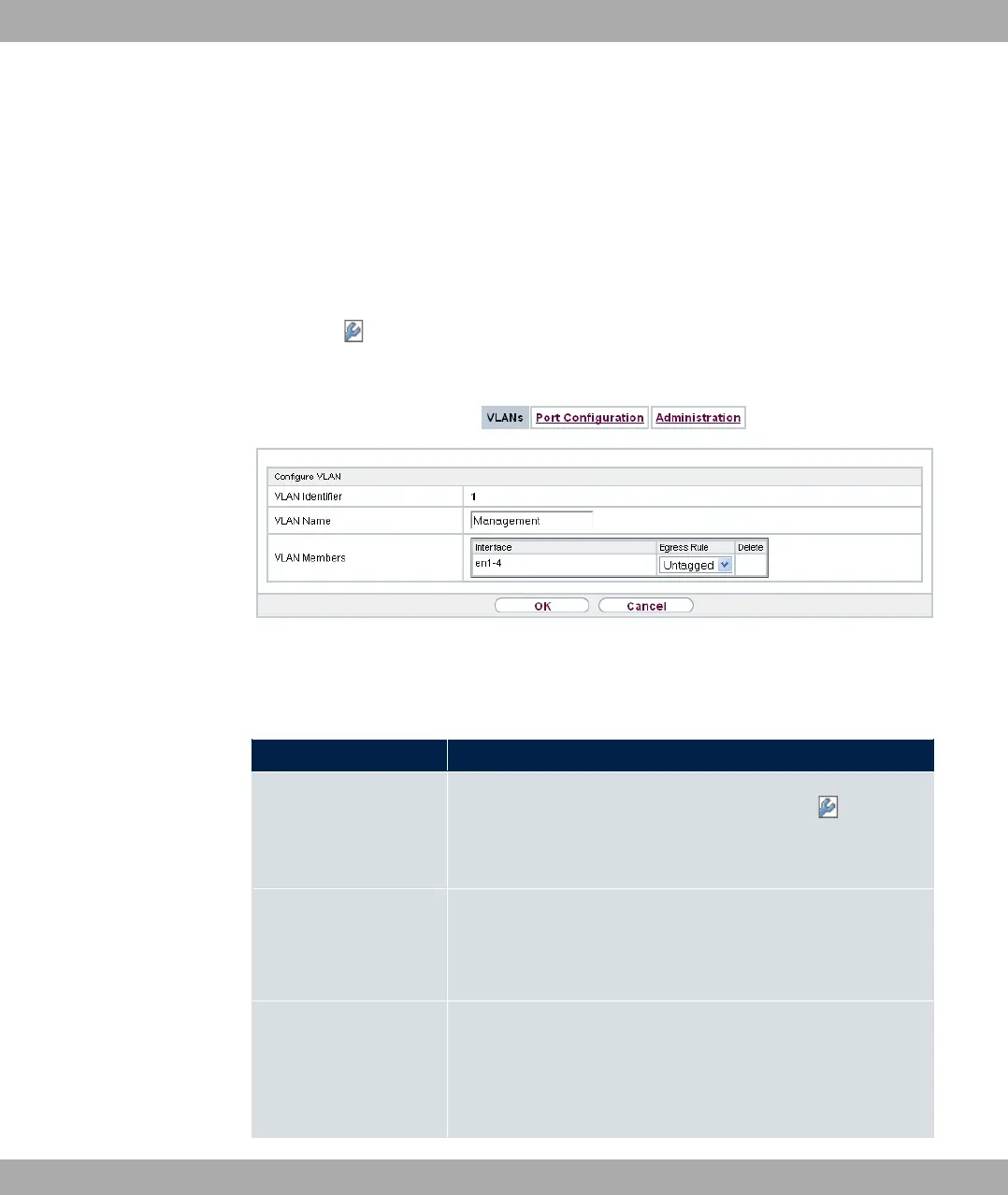In this menu, you can display all the VLANs already configured, edit your settings and cre-